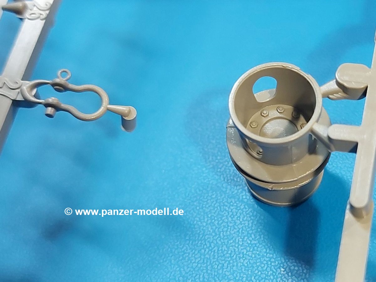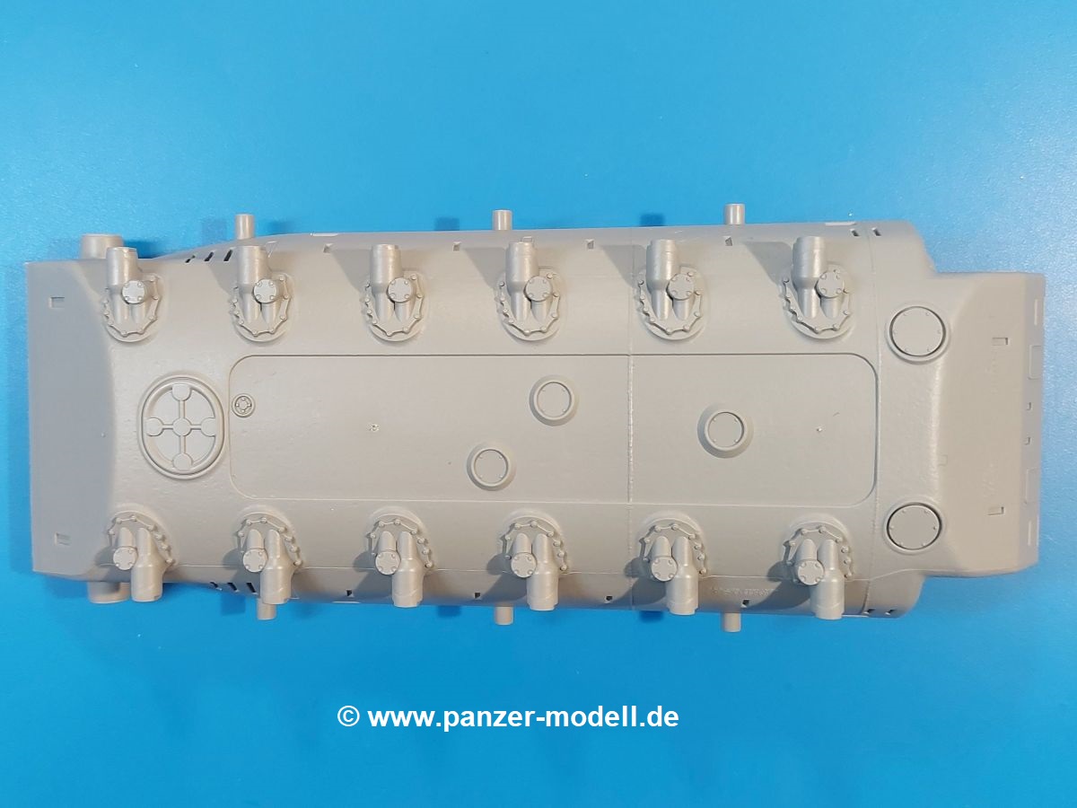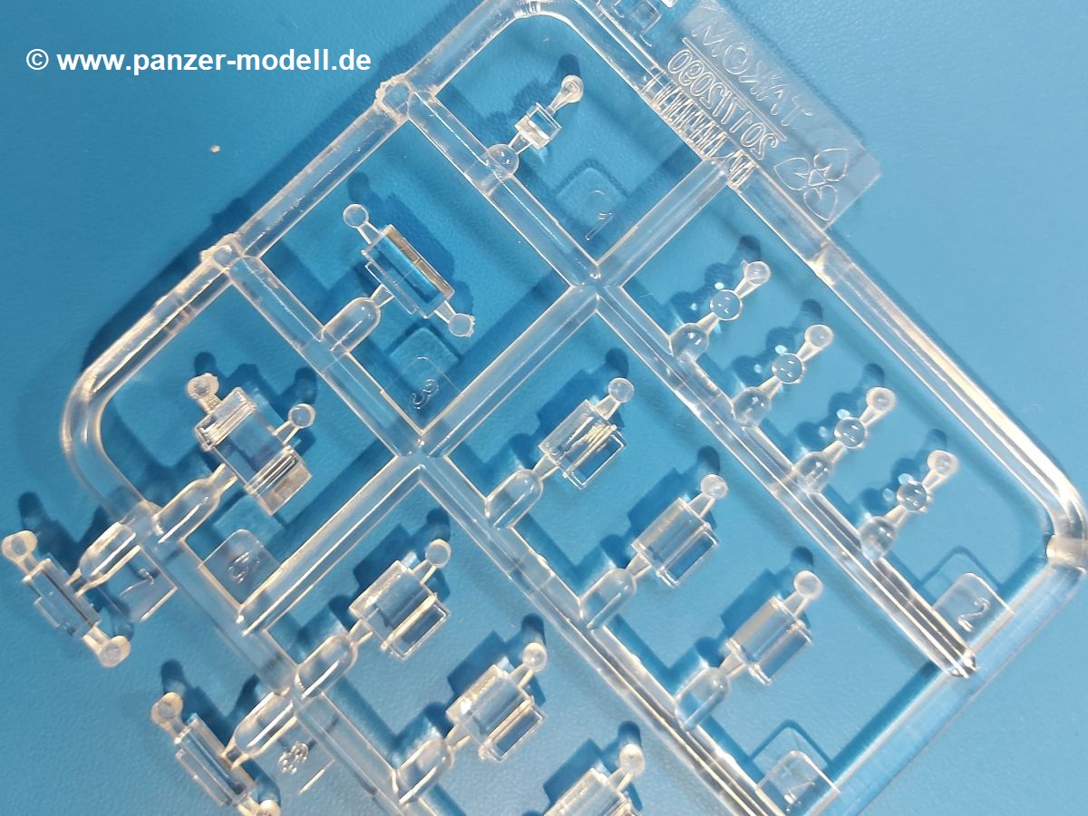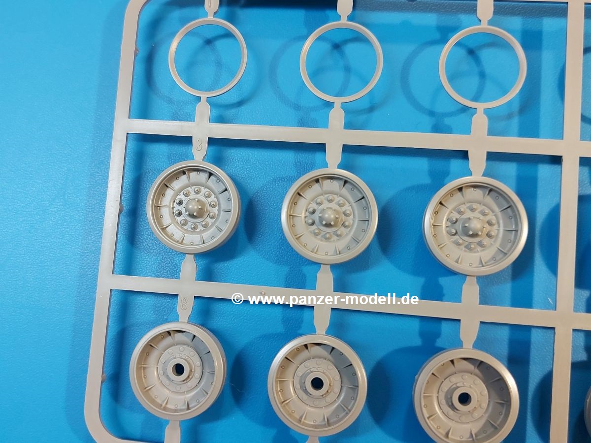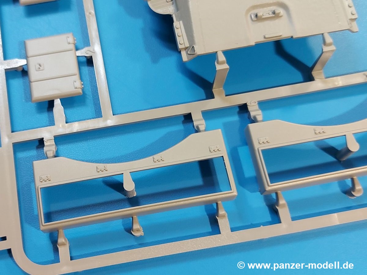Das Original: Der M-60 ist ein Kampfpanzer aus der Zeit des kalten Krieges, der auch heute noch bei einigen Ländern im Einsatz steht. Er war der Nachfolger des M-48, was man bei der ersten Version noch deutlich an der Turmform sehen konnte. Ab der Version M-60 A1 bekam er einen größeren, neu konzipierten Turm. Er wiegt ab A1 fast 53 Tonnen und erreicht mit seinem 750 PS Motor eine Höchstgeschwindigkeit von 48 km/h auf der Straße und 32 km/h im Gelände. Seine Bewaffnung besteht aus einer 105 mm M68 Kanone, einem M240 MG und einem M85 MG. Zum Gefecht stehen der 4-köpfigen Besatzung 63 Schuss 105 mm, 6000 Schuss 7,62 mm und 900 Schuss 12,7 mm Munition zur Verfügung. Konzipiert um gegen sowjetische T-54 bestehen zu können, konnte er sich in der Operation Desert Storm auch gegen T-55 und T-72 behaupten. Im Laufe der Jahre erhielt er weitere Kampfwertsteigerungen, zuletzt als M-60 A3 TTS. Der Bausatz: Bereits vor 2 Jahren hatte TAKOM den M-60 A1 mit ERA herausgebracht. Danach war in Richtung M-60 erst einmal Ruhe. Nun liegt vor uns der ursprüngliche M-60 A1 Der Karton ist 380 x 250 x 85 mm groß und gut bepackt. Die Spritzlinge sind in größtenteils wieder verschließbaren Klarsichttütchen verpackt. Wir finden im Karton 11 hellgraue Spritzlinge, 2 Klarsichtspritzlinge, die Unterwanne, eine PE-Platine, 1 Draht, 2 Stahlstifte und 1 Decalbogen. Dazu kommt eine 20-seitige Bauanleitung. Die Unterwanne ist einteilig und weist bereits viele, feine, saubere Details wie Notausstiegsluke, Wartungsdeckel und für die Aufnahme der Laufwerkskomponenten auf. Hinzu kommen feine, aber deutliche Gussnummern. Auch die Gussstruktur ist gut wiedergegeben. Die Laufwerkskomponenten bestehen aus den Stoßdämpfern und Endanschlägen der Schwingarme. Diese setzen sich mehrteilig zusammen und werden dann fest und arretiert in die Aufnahmen in der Unterwanne eingeklebt. Die Laufrollen setzen sich aus den Radkörper und der Laufrollengummierung in Spritzguss zusammen, wobei der innere Teil der Doppellaufrolle einteilig ausgeführt ist. Der Detailgrad ist hier wirklich höchst erfreulich und scharf und durch die separate Gummierung für die Außenlaufrolle bekommt man perfekt die markante M60 Laufrolle mit der Hinterschneidung des Felgenrandes dargestellt. Die Oberwanne besteht aus einem Teil, das den Vorderrumpf (mit offen darstellbarer Fahrerluke und Aussparungen für die Winkelspiegel) und die Motorabdeckung mit den geriffelten Wartungsklappen umfasst. Die Kettenbleche werden mit gelochten Halterungen, vielen großen, aber fein detaillierten Staukästen versehen und später separat an die Wanne geklebt. Die markanten Hecktüren mit ihren Schrägriffelungen weisen eine gute Tiefe auf. Im Bausatz liegt auch noch die Hecktür zum Verbau des Teifwatauspuffs bei, ist aber nicht für diesen Bausatz vorgesehen. Der Turm besteht aus Unter- und Oberteil. Wie bereits an der Wanne konnten wir eine gute Gußstruktur und Gußnummern entdecken, die auch die Kommandantenkuppel auszeichnen. Die Kuppel lässt sich schwenkbar bauen, ebenso das 12,7 mm MG, wenn man sich für die Version ohne Allwetterplane entscheidet. Die Kommandanten- wie auch die Ladeschützenluke können offen oder geschlossen angebaut werden. Die Abschleppseile werden aus Kupferdraht und Seilkauschen aus Plastik hergestellt und in die Haltehaken aus PE jeweils vom Turmheck zu den Seiten geführt. Der Turmstaukorb besteht aus 7 Plastikteilen und 2 PE-Gittern. Während man das Bodengitter so verkleben kann, muss das zweite Gitter erst mittels einer im Bausatz enthaltenen Biegeform gebogen werden. Die 105mm M68 Kanone besteht aus einem einteiligen Rohr, leider ohne Züge und Felder an der Mündung, und wird mit dem 2-teiligen Rauchabsauger ergänzt. Da die Blende samt Plane ausgebildet ist, wird die Kanone nicht höhenrichtbar sein. Der große Schießscheinwerfer hat schöne Innendetails, die auch durch die große, kristallklare Scheibe gut zu sehen sein werden. Die Halterung des Scheinwerfers hat mit 10 Teilen doppelt so viele Teile wie der Scheinwerfer selbst. Die Decals sind seidenmatt glänzend und scharf gedruckt. Damit lassen sich 5 Fahrzeuge darstellen: