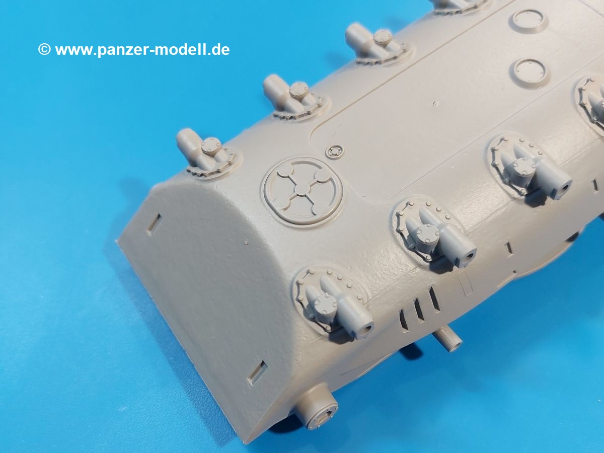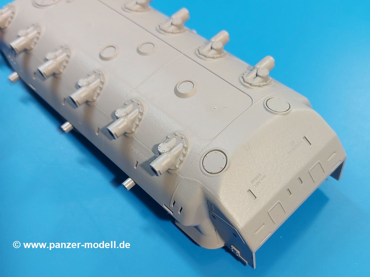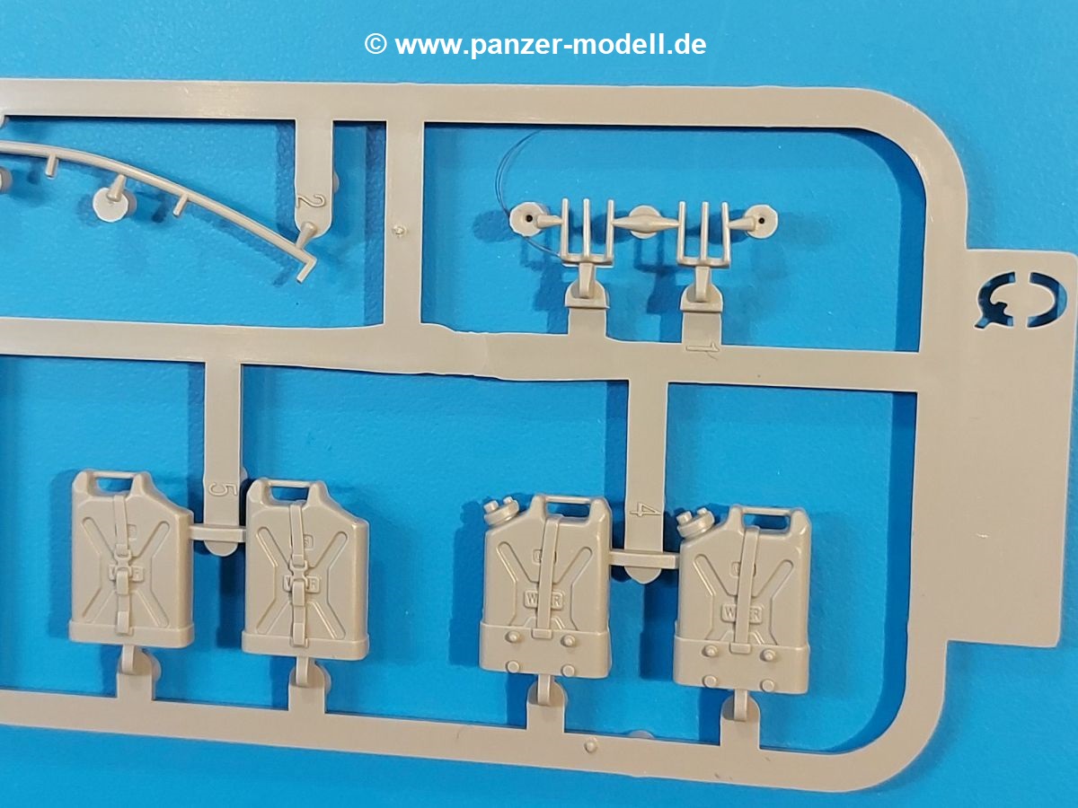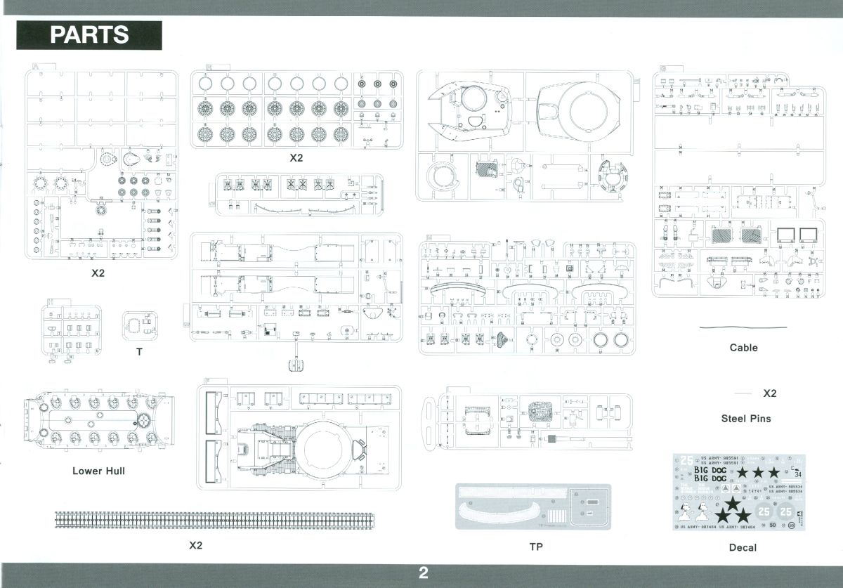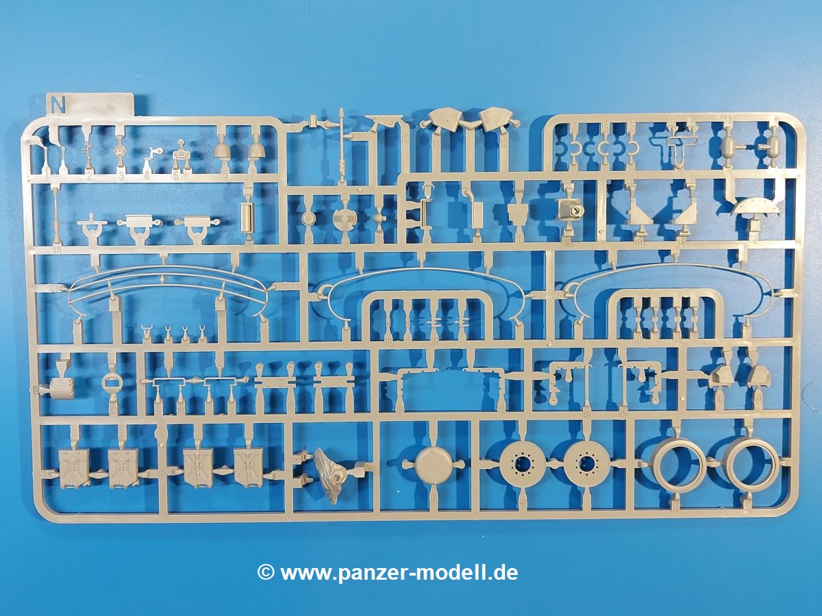 Das Original: Der M-60 ist ein Kampfpanzer aus der Zeit des kalten Krieges, der auch heute noch bei einigen Ländern im Einsatz steht. Er war der Nachfolger des M-48, was man bei der ersten Version noch deutlich an der Turmform sehen konnte. Ab der Version M-60 A1 bekam er einen größeren, neu konzipierten Turm. Er wiegt ab A1 fast 53 Tonnen und erreicht mit seinem 750 PS Motor eine Höchstgeschwindigkeit von 48 km/h auf der Straße und 32 km/h im Gelände. Seine Bewaffnung besteht aus einer 105 mm M68 Kanone, einem M240 MG und einem M85 MG. Zum Gefecht stehen der 4-köpfigen Besatzung 63 Schuss 105 mm, 6000 Schuss 7,62 mm und 900 Schuss 12,7 mm Munition zur Verfügung. Konzipiert um gegen sowjetische T-54 bestehen zu können, konnte er sich in der Operation Desert Storm auch gegen T-55 und T-72 behaupten. Im Laufe der Jahre erhielt er weitere Kampfwertsteigerungen, zuletzt als M-60 A3 TTS. Der Bausatz: Bereits vor 2 Jahren hatte TAKOM den M-60 A1 mit ERA herausgebracht. Danach war in Richtung M-60 erst einmal Ruhe. Nun liegt vor uns der ursprüngliche M-60 A1 Der Karton ist 380 x 250 x 85 mm groß und gut bepackt. Die Spritzlinge sind in größtenteils wieder verschließbaren Klarsichttütchen verpackt. Wir finden im Karton 11 hellgraue Spritzlinge, 2 Klarsichtspritzlinge, die Unterwanne, eine PE-Platine, 1 Draht, 2 Stahlstifte und 1 Decalbogen. Dazu kommt eine 20-seitige Bauanleitung. Die Unterwanne ist einteilig und weist bereits viele, feine, saubere Details wie Notausstiegsluke, Wartungsdeckel und für die Aufnahme der Laufwerkskomponenten auf. Hinzu kommen feine, aber deutliche Gussnummern. Auch die Gussstruktur ist gut wiedergegeben. Die Laufwerkskomponenten bestehen aus den Stoßdämpfern und Endanschlägen der Schwingarme. Diese setzen sich mehrteilig zusammen und werden dann fest und arretiert in die Aufnahmen in der Unterwanne eingeklebt. Die Laufrollen setzen sich aus den Radkörper und der Laufrollengummierung in Spritzguss zusammen, wobei der innere Teil der Doppellaufrolle einteilig ausgeführt ist. Der Detailgrad ist hier wirklich höchst erfreulich und scharf und durch die separate Gummierung für die Außenlaufrolle bekommt man perfekt die markante M60 Laufrolle mit der Hinterschneidung des Felgenrandes dargestellt. Die Oberwanne besteht aus einem Teil, das den Vorderrumpf (mit offen darstellbarer Fahrerluke und Aussparungen für die Winkelspiegel) und die Motorabdeckung mit den geriffelten Wartungsklappen umfasst. Die Kettenbleche werden mit gelochten Halterungen, vielen großen, aber fein detaillierten Staukästen versehen und später separat an die Wanne geklebt. Die markanten Hecktüren mit ihren Schrägriffelungen weisen eine gute Tiefe auf. Im Bausatz liegt auch noch die Hecktür zum Verbau des Teifwatauspuffs bei, ist aber nicht für diesen Bausatz vorgesehen. Der Turm besteht aus Unter- und Oberteil. Wie bereits an der Wanne konnten wir eine gute Gußstruktur und Gußnummern entdecken, die auch die Kommandantenkuppel auszeichnen. Die Kuppel lässt sich schwenkbar bauen, ebenso das 12,7 mm MG, wenn man sich für die Version ohne Allwetterplane entscheidet. Die Kommandanten- wie auch die Ladeschützenluke können offen oder geschlossen angebaut werden. Die Abschleppseile werden aus Kupferdraht und Seilkauschen aus Plastik hergestellt und in die Haltehaken aus PE jeweils vom Turmheck zu den Seiten geführt. Der Turmstaukorb besteht aus 7 Plastikteilen und 2 PE-Gittern. Während man das Bodengitter so verkleben kann, muss das zweite Gitter erst mittels einer im Bausatz enthaltenen Biegeform gebogen werden. Die 105mm M68 Kanone besteht aus einem einteiligen Rohr, leider ohne Züge und Felder an der Mündung, und wird mit dem 2-teiligen Rauchabsauger ergänzt. Da die Blende samt Plane ausgebildet ist, wird die Kanone nicht höhenrichtbar sein. Der große Schießscheinwerfer hat schöne Innendetails, die auch durch die große, kristallklare Scheibe gut zu sehen sein werden. Die Halterung des Scheinwerfers hat mit 10 Teilen doppelt so viele Teile wie der Scheinwerfer selbst. Die Decals sind seidenmatt glänzend und scharf gedruckt. Damit lassen sich 5 Fahrzeuge darstellen: