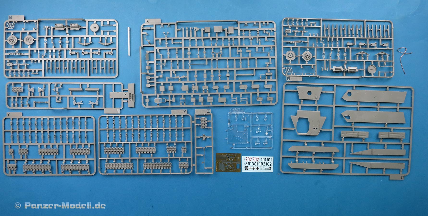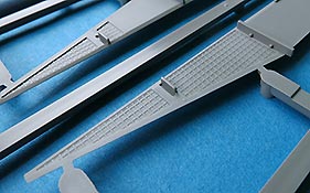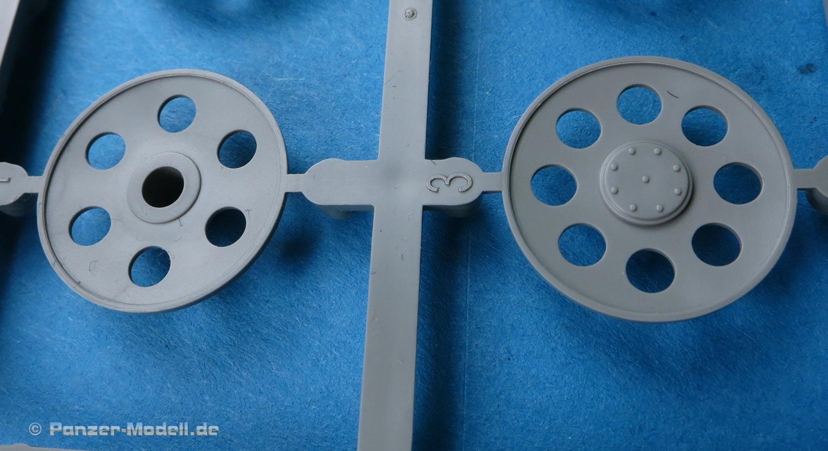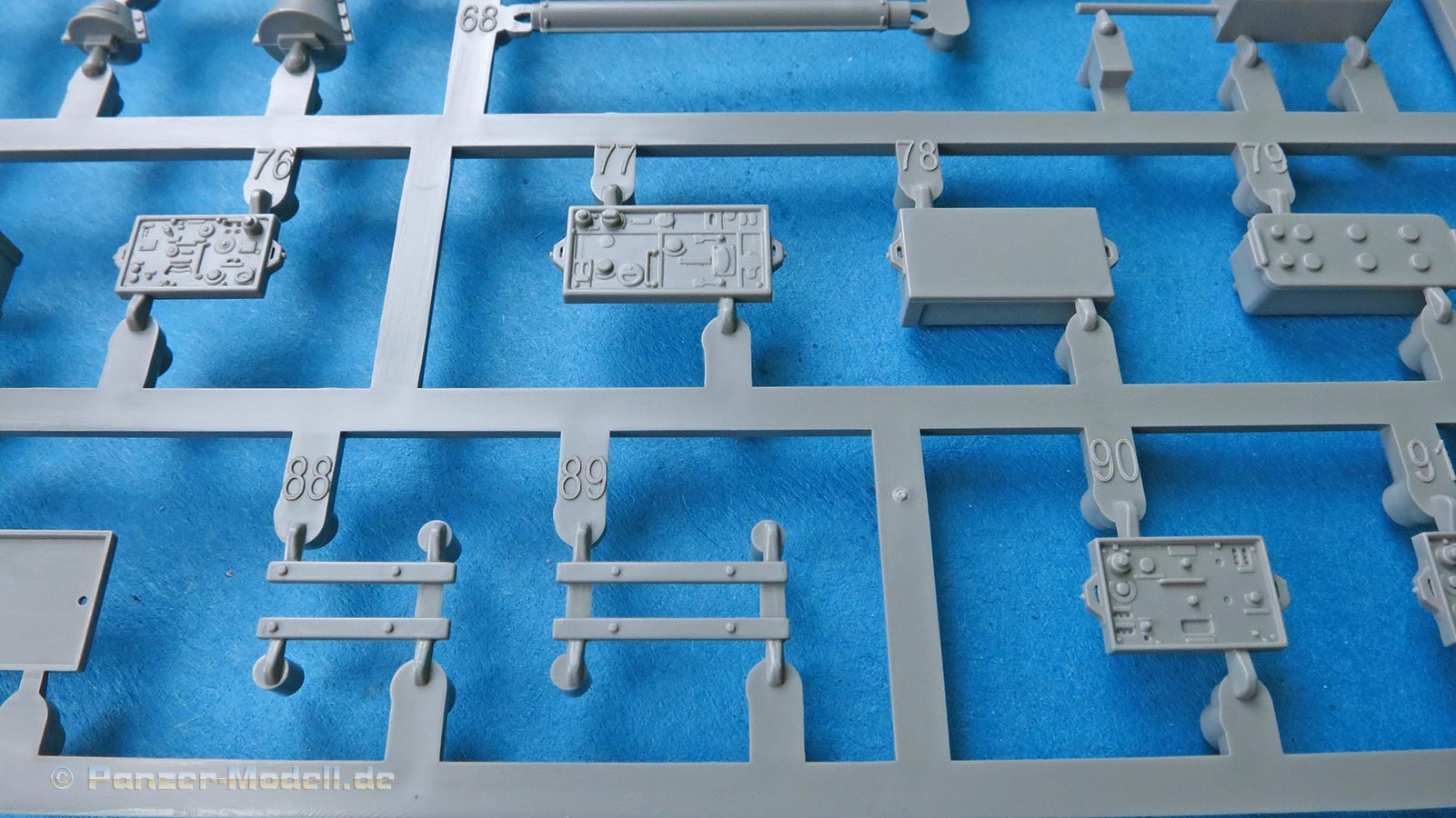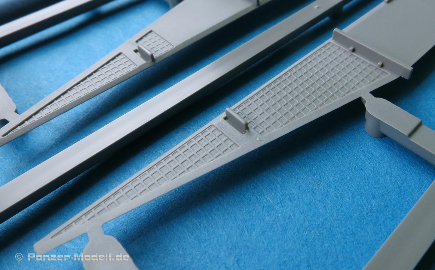 Die Teile sind sauber ausgespritzt, mit scharfen Details, ohne Versatz und Verzug. Angüsse sind so angebracht, dass ein Abtrennen der Teile einfach und ohne große Nacharbeit vonstattengehen sollte. Auswerfer sind oft nur flach und meist auf die Angüsse gesetzt oder auf Innenseiten von Teilen, die nach dem Bau kaum mehr einsehbar sind.