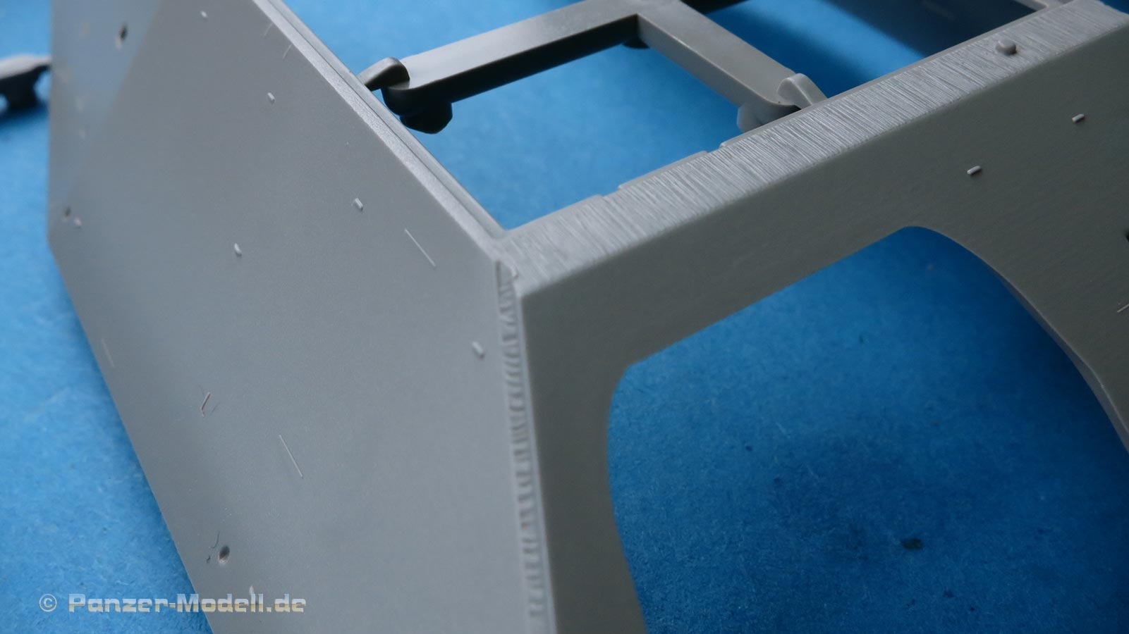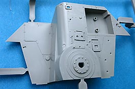Der Hetzer hat keine Kettenschürzen und die Aufnahmen an den Aufbauseiten müssen verspachtelt werden.