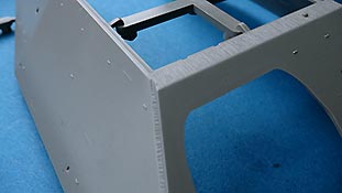 Leider sind auf der Innenseite der Seitenbleche einige Auswerferstellen zu sehen, die man erst mühselig verschleifen müsste, wenn man den Innenraum richtig sehenswert haben will.