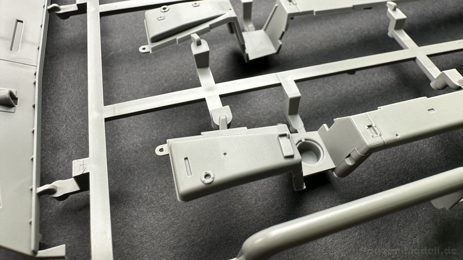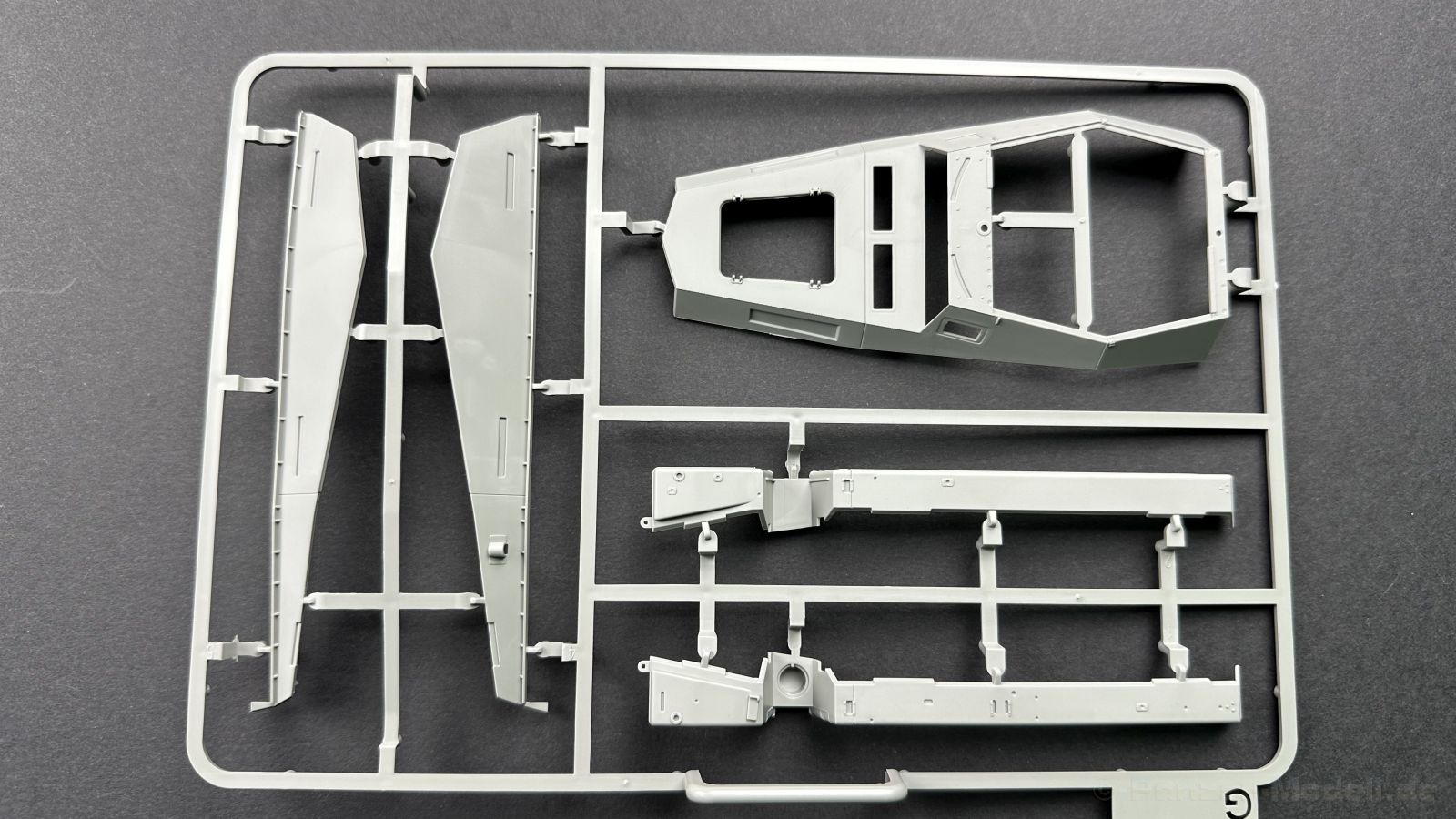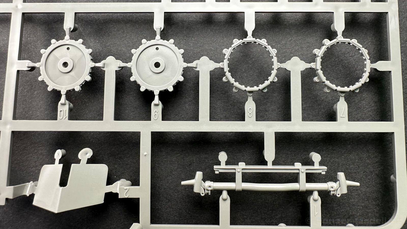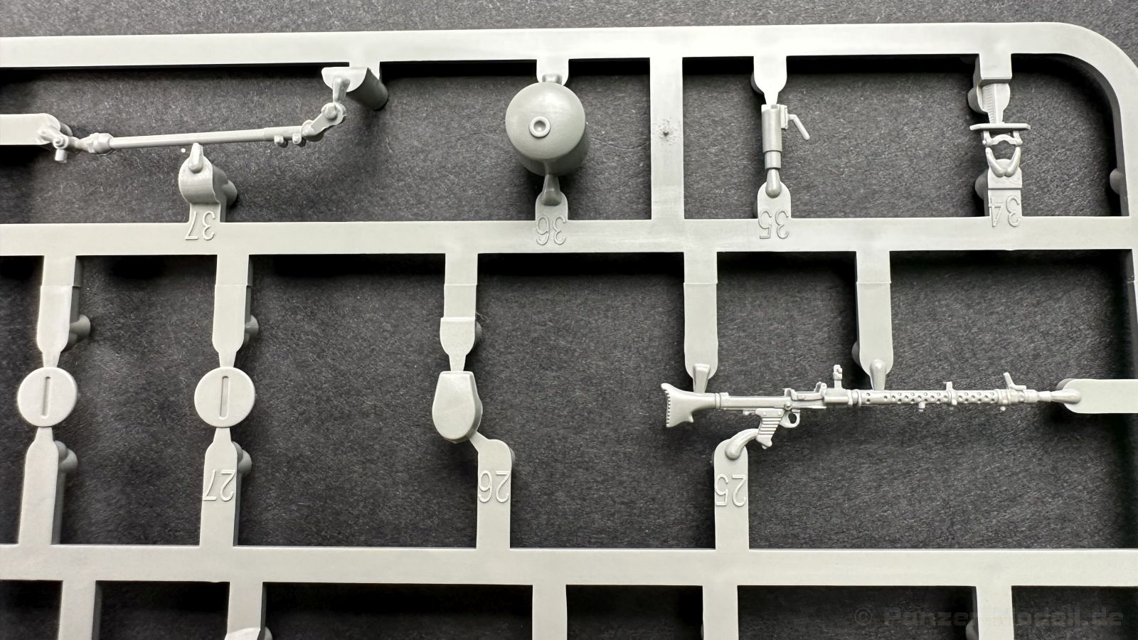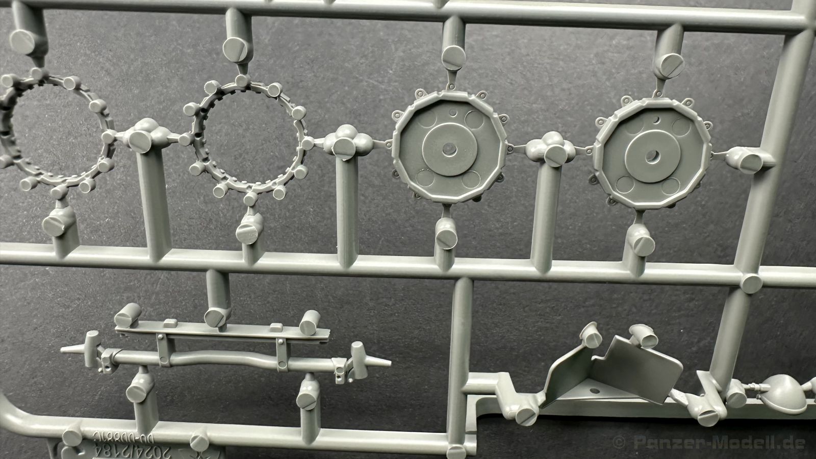 Es hat lange gedauert bis sich ein Hersteller an eine neue Version des kleinen Bruders des „251“ gewagt hat. Zuletzt haben wir ein Bausatz des Sd. Kfz. 250 Alte von Dragon erhalten das noch Wurzeln bei Gunze Sangyo aus den späten 1980 / frühen 1990 Jahren hatte. Kommen wir zu den Eckdaten. Wir finden in dem Takom typischen hellen Kunststoff insgesamt: - 12 Spritzlinge Die Anleitung gliedert sich in 27 Baustufen. Auf den ersten Blick finden wir hier einen Bausatz absolut auf der Höhe der Zeit was Details, Gravuren und Ausstattung angeht. Die Anleitung startet mit dem Zusammenbau der Details in der Wanne, erfreulicherweise ist die Wanne einteilig. Die Details in der Wanne sind Top, leider verschwindet davon das meiste unter dem Kampfraum bzw. der Abdeckung. Apropos der Kampfraumboden, leider sind hier viel zu wenige „Punkte“ aufgebracht die das Warzenblech imitieren sollen. Bei Baustufe 3 ist die Bezeichnung falsch bei Bauteil B4 muss nicht B5 angeklebt werden sondern B9 ! Die Einzelgliederkette muss aus dem Rahmen gelöst werden, ein wenig versäubert werden und wird, wenn wirklich sehr wenig dickflüssiger Kleber auf dem Laufpolster verwendet wird sogar beweglich. Die Reifen werden in Sandwichbausweise / Scheiben zusammengeklebt, dadurch erhalten wir ein großartiges Profil. Leider fehlen bei den Laufrollen und dem Vorderädern sämtliche Herstelleraufdrucke. Das Getriebe ist wirklich sehr schön detailliert, leider ist die Position im Fahrzeug nicht ganz richtig, das Getriebe müsste auf Höhe des 1. Laufrades befinden. Leider hat Takom hier nicht richtig gearbeitet. Eine Korrektur wird schwierig da der Fußraum dann nicht mehr passt und alle Anbauteile dann nicht montiert werden können. Ein Motor ist ebenfalls enthalten, auch hier finden wir eine tolle Detaillierung vor, ein wesentlicher Gewinn wenn wir an Dragon denken die auch einen Motor haben der allerdings nur rudimentär detailliert ist. Bauteil F12 kann getrost entsorgt werden, die beiden Ersatzlaufbehälter für das MG34 sind viel zu klein. In Bauschritt 17 muss der Feuerlöscher gerade montiert werden und nicht wie in der Anleitung gezeigt schräg. Ein Highlight vom Bausatz sind die Planen und die Beladung, hier fallen die großartigen Gravuren und Details ins Auge. Schön ist ebenfalls das Takom eine passende Fahrer Figur mit ins Modell gepackt hat. Ebenfalls großartig sind die 3 verschiedenen Abdeckungen / Planen für den Kampfraum, hier habt ihr die Auswahl von ganz, halb oder dreiviertel ausgerollt, auch hier fallen die Details, Faltenwurf und Co auf. Man könnte jetzt ja Unken und das begründen das man sonot nicht die Fehler in der Innenraumaufteilung sieht.. An Decals hat Takom insgesamt 4 Varianten gedacht, alle in Panzergrau gehalten: - Kradschützen Battalion GD , Army Group South , Summer 1942 Erfreulich ist ebenfalls das wir ein Farbprofile für die Bemalung des Innenraums / Motorraum vorfinden. Leider alles ohne Farbangaben. Mein Fazit fällt leider total durchwachsen aus. Auf der einen Seite ein Bausatz auf der Höhe der Zeit mit richtig viel Zubehör wie EZK, Fahrer, Beladung, Plane etc. anderseits grobe Schnitzer bei den Details und der Aufteilung im Innenraum. Interessant ist natürlich der mehr als günstige Preis von unter 30 Euro