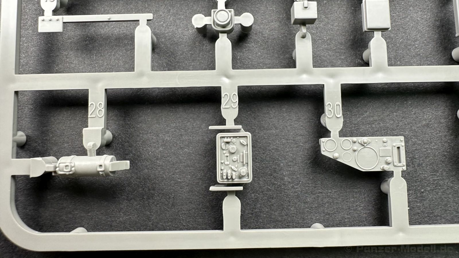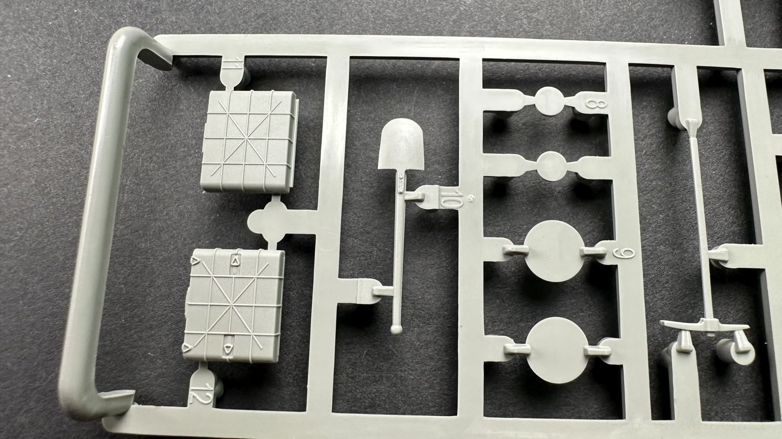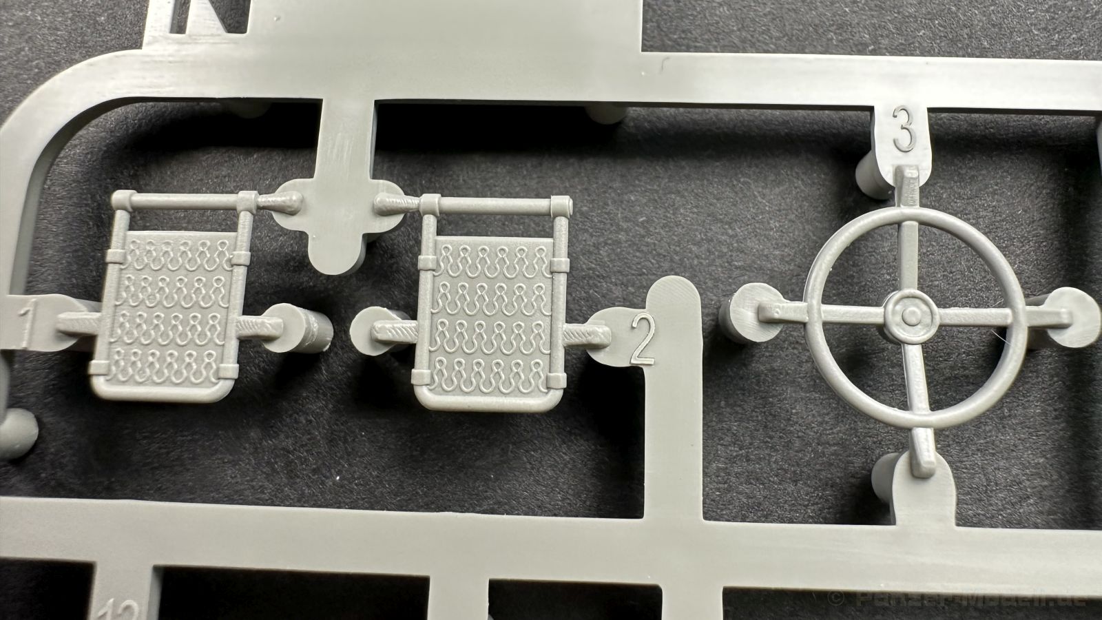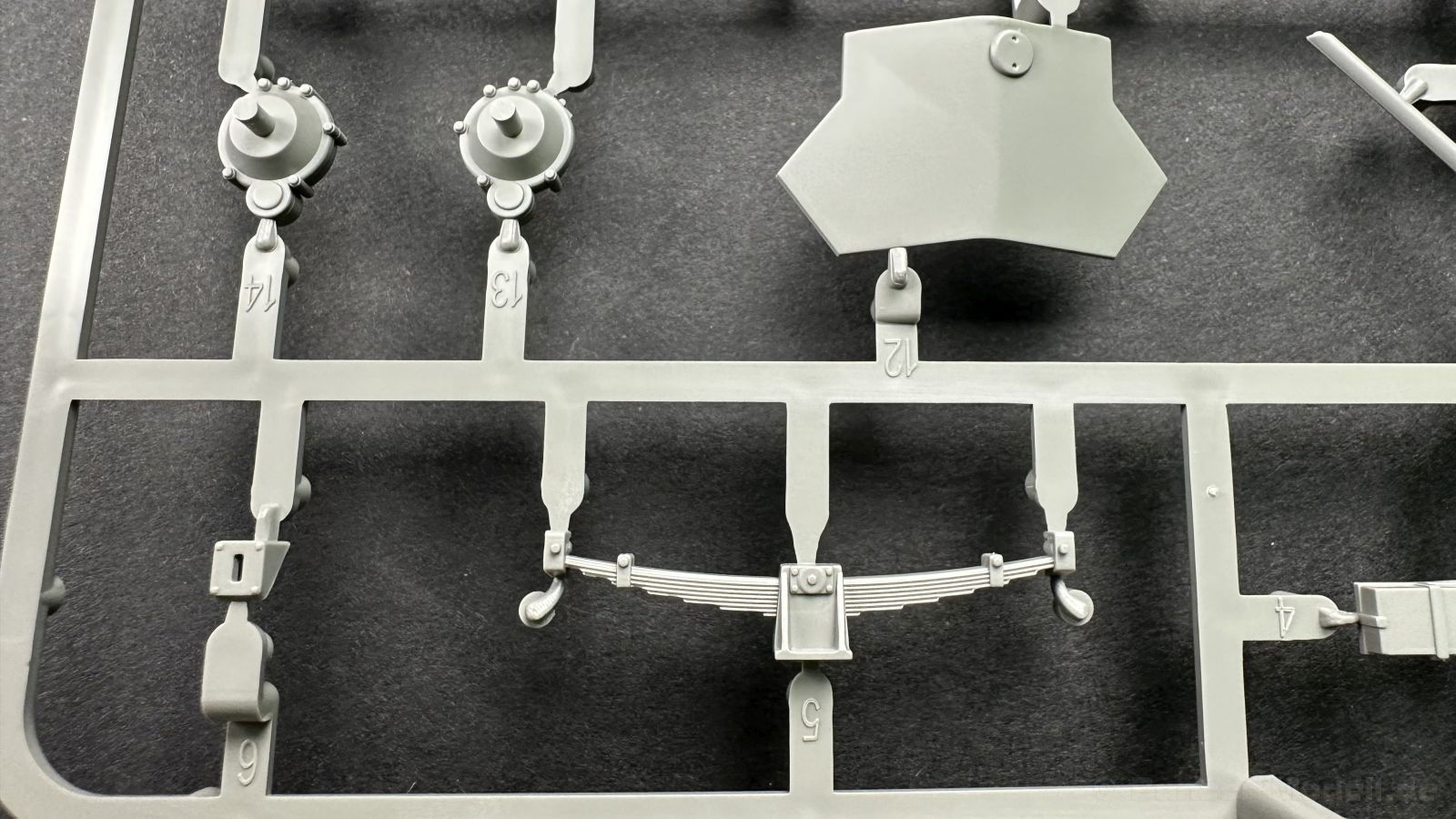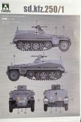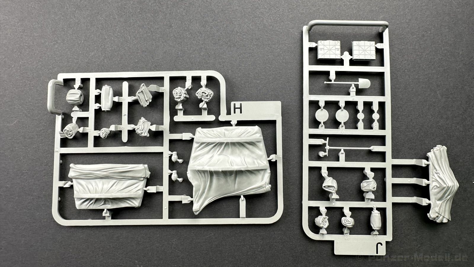 Es hat lange gedauert bis sich ein Hersteller an eine neue Version des kleinen Bruders des „251“ gewagt hat. Zuletzt haben wir ein Bausatz des Sd. Kfz. 250 Alte von Dragon erhalten das noch Wurzeln bei Gunze Sangyo aus den späten 1980 / frühen 1990 Jahren hatte. Kommen wir zu den Eckdaten. Wir finden in dem Takom typischen hellen Kunststoff insgesamt: - 12 Spritzlinge Die Anleitung gliedert sich in 27 Baustufen. Auf den ersten Blick finden wir hier einen Bausatz absolut auf der Höhe der Zeit was Details, Gravuren und Ausstattung angeht. Die Anleitung startet mit dem Zusammenbau der Details in der Wanne, erfreulicherweise ist die Wanne einteilig. Die Details in der Wanne sind Top, leider verschwindet davon das meiste unter dem Kampfraum bzw. der Abdeckung. Apropos der Kampfraumboden, leider sind hier viel zu wenige „Punkte“ aufgebracht die das Warzenblech imitieren sollen. Bei Baustufe 3 ist die Bezeichnung falsch bei Bauteil B4 muss nicht B5 angeklebt werden sondern B9 ! Die Einzelgliederkette muss aus dem Rahmen gelöst werden, ein wenig versäubert werden und wird, wenn wirklich sehr wenig dickflüssiger Kleber auf dem Laufpolster verwendet wird sogar beweglich. Die Reifen werden in Sandwichbausweise / Scheiben zusammengeklebt, dadurch erhalten wir ein großartiges Profil. Leider fehlen bei den Laufrollen und dem Vorderädern sämtliche Herstelleraufdrucke. Das Getriebe ist wirklich sehr schön detailliert, leider ist die Position im Fahrzeug nicht ganz richtig, das Getriebe müsste auf Höhe des 1. Laufrades befinden. Leider hat Takom hier nicht richtig gearbeitet. Eine Korrektur wird schwierig da der Fußraum dann nicht mehr passt und alle Anbauteile dann nicht montiert werden können. Ein Motor ist ebenfalls enthalten, auch hier finden wir eine tolle Detaillierung vor, ein wesentlicher Gewinn wenn wir an Dragon denken die auch einen Motor haben der allerdings nur rudimentär detailliert ist. Bauteil F12 kann getrost entsorgt werden, die beiden Ersatzlaufbehälter für das MG34 sind viel zu klein. In Bauschritt 17 muss der Feuerlöscher gerade montiert werden und nicht wie in der Anleitung gezeigt schräg. Ein Highlight vom Bausatz sind die Planen und die Beladung, hier fallen die großartigen Gravuren und Details ins Auge. Schön ist ebenfalls das Takom eine passende Fahrer Figur mit ins Modell gepackt hat. Ebenfalls großartig sind die 3 verschiedenen Abdeckungen / Planen für den Kampfraum, hier habt ihr die Auswahl von ganz, halb oder dreiviertel ausgerollt, auch hier fallen die Details, Faltenwurf und Co auf. Man könnte jetzt ja Unken und das begründen das man sonot nicht die Fehler in der Innenraumaufteilung sieht.. An Decals hat Takom insgesamt 4 Varianten gedacht, alle in Panzergrau gehalten: - Kradschützen Battalion GD , Army Group South , Summer 1942 Erfreulich ist ebenfalls das wir ein Farbprofile für die Bemalung des Innenraums / Motorraum vorfinden. Leider alles ohne Farbangaben. Mein Fazit fällt leider total durchwachsen aus. Auf der einen Seite ein Bausatz auf der Höhe der Zeit mit richtig viel Zubehör wie EZK, Fahrer, Beladung, Plane etc. anderseits grobe Schnitzer bei den Details und der Aufteilung im Innenraum. Interessant ist natürlich der mehr als günstige Preis von unter 30 Euro