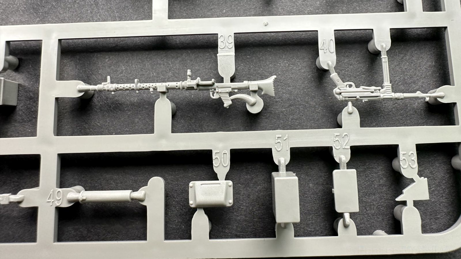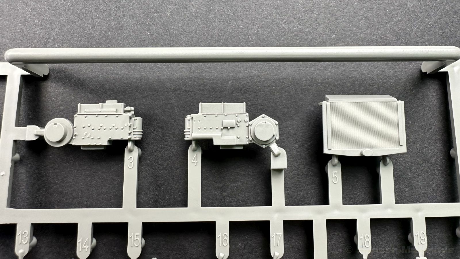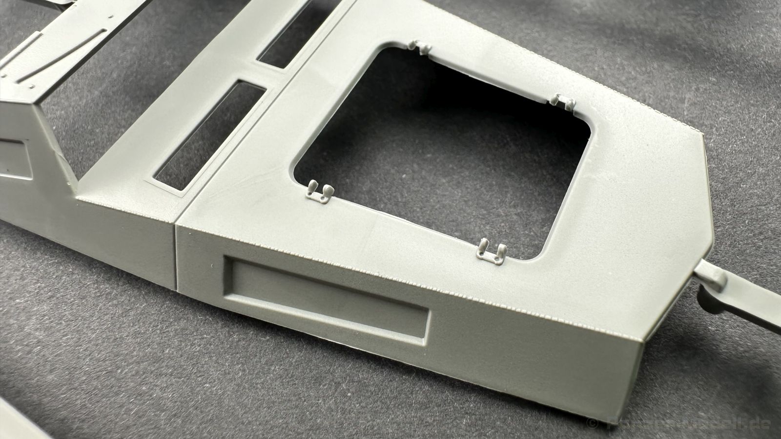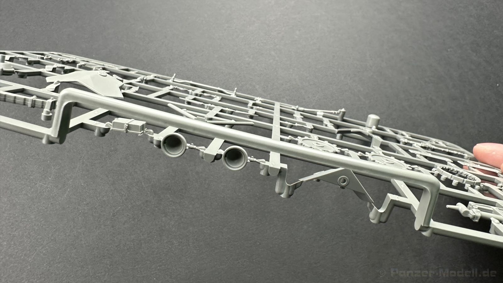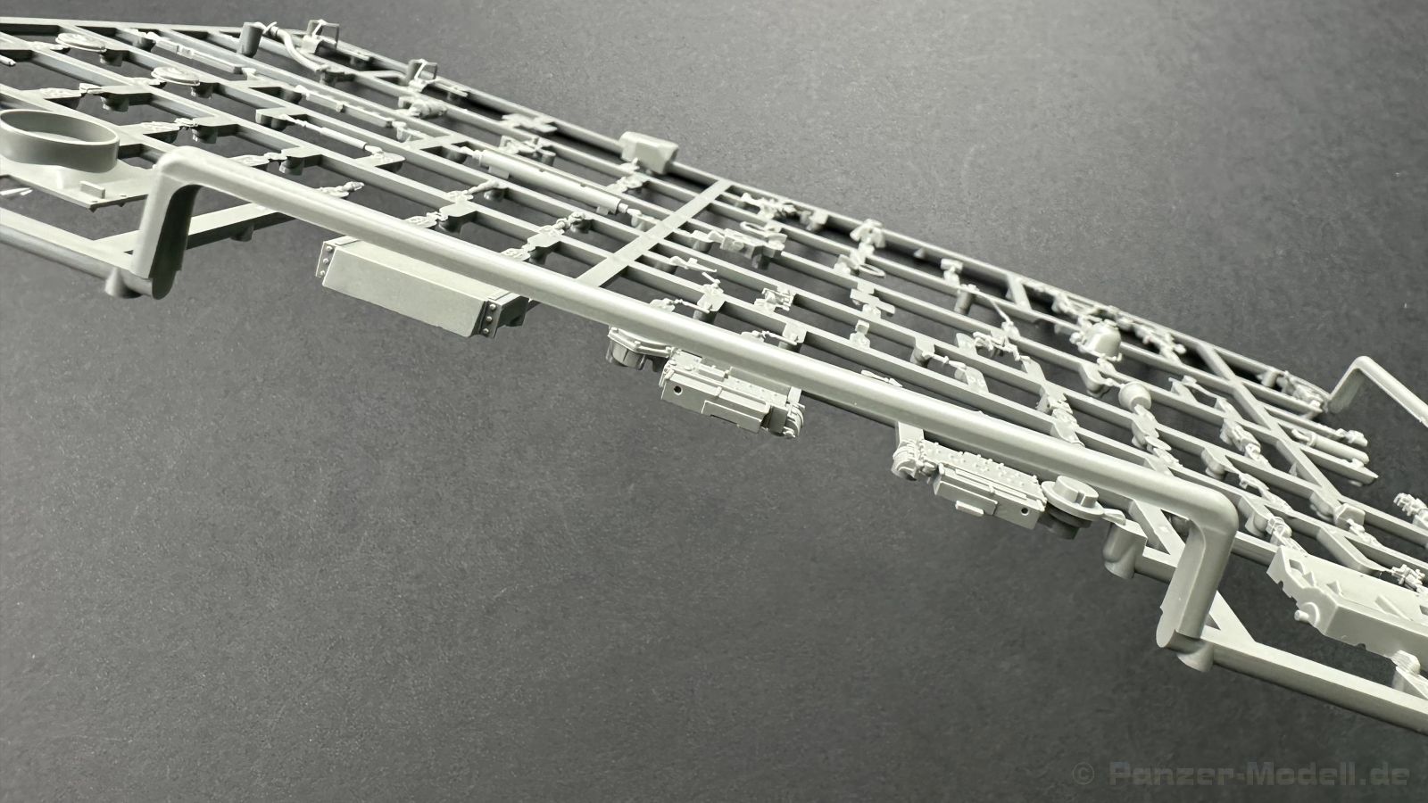 Es hat lange gedauert bis sich ein Hersteller an eine neue Version des kleinen Bruders des „251“ gewagt hat. Zuletzt haben wir ein Bausatz des Sd. Kfz. 250 Alte von Dragon erhalten das noch Wurzeln bei Gunze Sangyo aus den späten 1980 / frühen 1990 Jahren hatte. Kommen wir zu den Eckdaten. Wir finden in dem Takom typischen hellen Kunststoff insgesamt: - 12 Spritzlinge Die Anleitung gliedert sich in 27 Baustufen. Auf den ersten Blick finden wir hier einen Bausatz absolut auf der Höhe der Zeit was Details, Gravuren und Ausstattung angeht. Die Anleitung startet mit dem Zusammenbau der Details in der Wanne, erfreulicherweise ist die Wanne einteilig. Die Details in der Wanne sind Top, leider verschwindet davon das meiste unter dem Kampfraum bzw. der Abdeckung. Apropos der Kampfraumboden, leider sind hier viel zu wenige „Punkte“ aufgebracht die das Warzenblech imitieren sollen. Bei Baustufe 3 ist die Bezeichnung falsch bei Bauteil B4 muss nicht B5 angeklebt werden sondern B9 ! Die Einzelgliederkette muss aus dem Rahmen gelöst werden, ein wenig versäubert werden und wird, wenn wirklich sehr wenig dickflüssiger Kleber auf dem Laufpolster verwendet wird sogar beweglich. Die Reifen werden in Sandwichbausweise / Scheiben zusammengeklebt, dadurch erhalten wir ein großartiges Profil. Leider fehlen bei den Laufrollen und dem Vorderädern sämtliche Herstelleraufdrucke. Das Getriebe ist wirklich sehr schön detailliert, leider ist die Position im Fahrzeug nicht ganz richtig, das Getriebe müsste auf Höhe des 1. Laufrades befinden. Leider hat Takom hier nicht richtig gearbeitet. Eine Korrektur wird schwierig da der Fußraum dann nicht mehr passt und alle Anbauteile dann nicht montiert werden können. Ein Motor ist ebenfalls enthalten, auch hier finden wir eine tolle Detaillierung vor, ein wesentlicher Gewinn wenn wir an Dragon denken die auch einen Motor haben der allerdings nur rudimentär detailliert ist. Bauteil F12 kann getrost entsorgt werden, die beiden Ersatzlaufbehälter für das MG34 sind viel zu klein. In Bauschritt 17 muss der Feuerlöscher gerade montiert werden und nicht wie in der Anleitung gezeigt schräg. Ein Highlight vom Bausatz sind die Planen und die Beladung, hier fallen die großartigen Gravuren und Details ins Auge. Schön ist ebenfalls das Takom eine passende Fahrer Figur mit ins Modell gepackt hat. Ebenfalls großartig sind die 3 verschiedenen Abdeckungen / Planen für den Kampfraum, hier habt ihr die Auswahl von ganz, halb oder dreiviertel ausgerollt, auch hier fallen die Details, Faltenwurf und Co auf. Man könnte jetzt ja Unken und das begründen das man sonot nicht die Fehler in der Innenraumaufteilung sieht.. An Decals hat Takom insgesamt 4 Varianten gedacht, alle in Panzergrau gehalten: - Kradschützen Battalion GD , Army Group South , Summer 1942 Erfreulich ist ebenfalls das wir ein Farbprofile für die Bemalung des Innenraums / Motorraum vorfinden. Leider alles ohne Farbangaben. Mein Fazit fällt leider total durchwachsen aus. Auf der einen Seite ein Bausatz auf der Höhe der Zeit mit richtig viel Zubehör wie EZK, Fahrer, Beladung, Plane etc. anderseits grobe Schnitzer bei den Details und der Aufteilung im Innenraum. Interessant ist natürlich der mehr als günstige Preis von unter 30 Euro