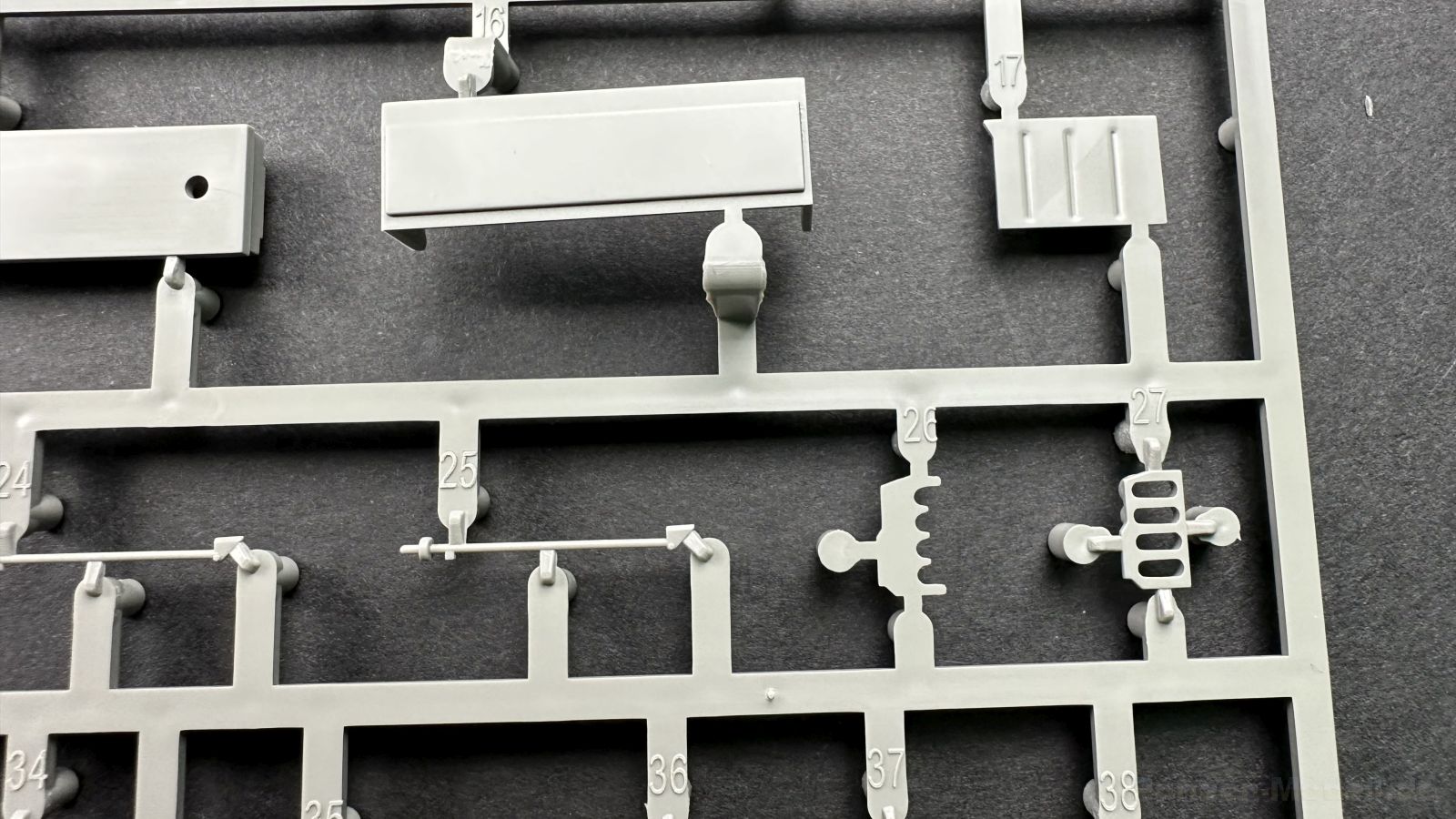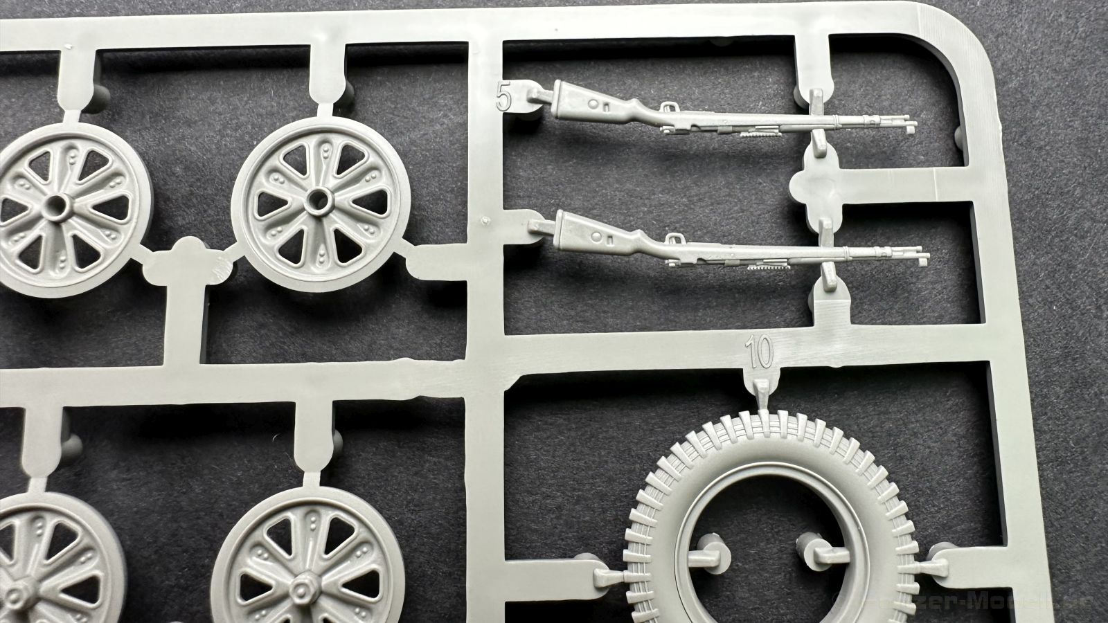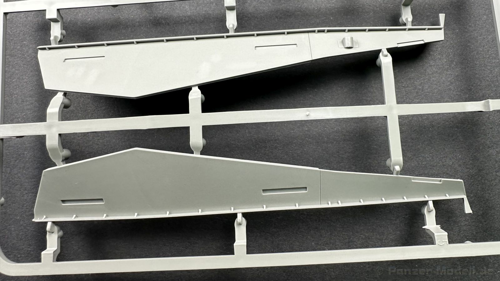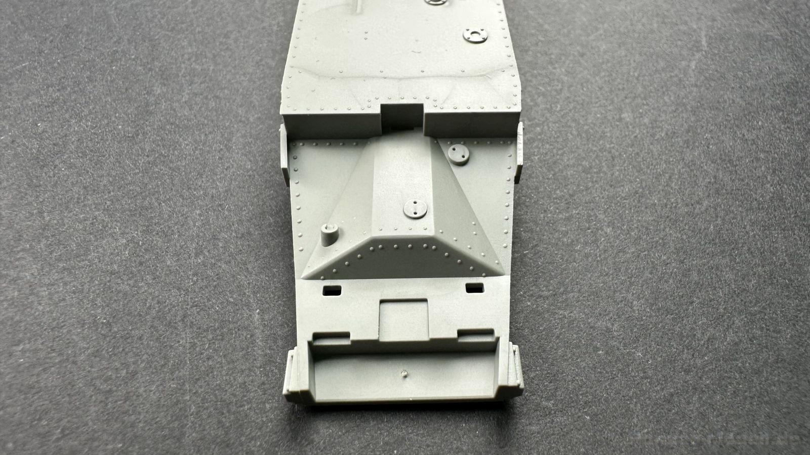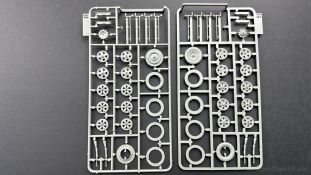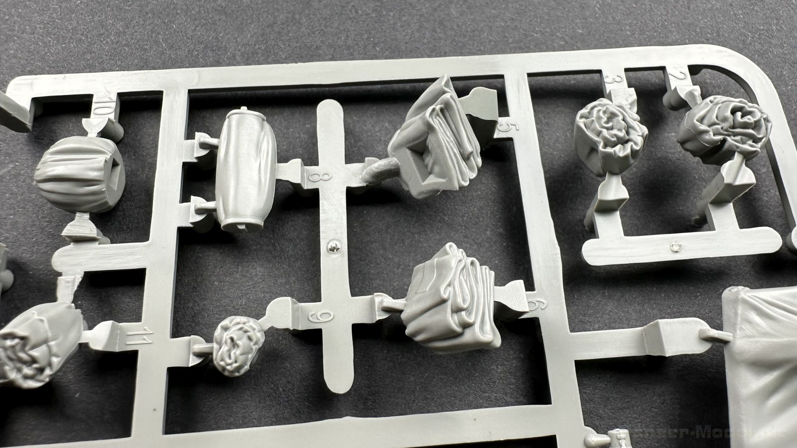 Es hat lange gedauert bis sich ein Hersteller an eine neue Version des kleinen Bruders des „251“ gewagt hat. Zuletzt haben wir ein Bausatz des Sd. Kfz. 250 Alte von Dragon erhalten das noch Wurzeln bei Gunze Sangyo aus den späten 1980 / frühen 1990 Jahren hatte. Kommen wir zu den Eckdaten. Wir finden in dem Takom typischen hellen Kunststoff insgesamt: - 12 Spritzlinge Die Anleitung gliedert sich in 27 Baustufen. Auf den ersten Blick finden wir hier einen Bausatz absolut auf der Höhe der Zeit was Details, Gravuren und Ausstattung angeht. Die Anleitung startet mit dem Zusammenbau der Details in der Wanne, erfreulicherweise ist die Wanne einteilig. Die Details in der Wanne sind Top, leider verschwindet davon das meiste unter dem Kampfraum bzw. der Abdeckung. Apropos der Kampfraumboden, leider sind hier viel zu wenige „Punkte“ aufgebracht die das Warzenblech imitieren sollen. Bei Baustufe 3 ist die Bezeichnung falsch bei Bauteil B4 muss nicht B5 angeklebt werden sondern B9 ! Die Einzelgliederkette muss aus dem Rahmen gelöst werden, ein wenig versäubert werden und wird, wenn wirklich sehr wenig dickflüssiger Kleber auf dem Laufpolster verwendet wird sogar beweglich. Die Reifen werden in Sandwichbausweise / Scheiben zusammengeklebt, dadurch erhalten wir ein großartiges Profil. Leider fehlen bei den Laufrollen und dem Vorderädern sämtliche Herstelleraufdrucke. Das Getriebe ist wirklich sehr schön detailliert, leider ist die Position im Fahrzeug nicht ganz richtig, das Getriebe müsste auf Höhe des 1. Laufrades befinden. Leider hat Takom hier nicht richtig gearbeitet. Eine Korrektur wird schwierig da der Fußraum dann nicht mehr passt und alle Anbauteile dann nicht montiert werden können. Ein Motor ist ebenfalls enthalten, auch hier finden wir eine tolle Detaillierung vor, ein wesentlicher Gewinn wenn wir an Dragon denken die auch einen Motor haben der allerdings nur rudimentär detailliert ist. Bauteil F12 kann getrost entsorgt werden, die beiden Ersatzlaufbehälter für das MG34 sind viel zu klein. In Bauschritt 17 muss der Feuerlöscher gerade montiert werden und nicht wie in der Anleitung gezeigt schräg. Ein Highlight vom Bausatz sind die Planen und die Beladung, hier fallen die großartigen Gravuren und Details ins Auge. Schön ist ebenfalls das Takom eine passende Fahrer Figur mit ins Modell gepackt hat. Ebenfalls großartig sind die 3 verschiedenen Abdeckungen / Planen für den Kampfraum, hier habt ihr die Auswahl von ganz, halb oder dreiviertel ausgerollt, auch hier fallen die Details, Faltenwurf und Co auf. Man könnte jetzt ja Unken und das begründen das man sonot nicht die Fehler in der Innenraumaufteilung sieht.. An Decals hat Takom insgesamt 4 Varianten gedacht, alle in Panzergrau gehalten: - Kradschützen Battalion GD , Army Group South , Summer 1942 Erfreulich ist ebenfalls das wir ein Farbprofile für die Bemalung des Innenraums / Motorraum vorfinden. Leider alles ohne Farbangaben. Mein Fazit fällt leider total durchwachsen aus. Auf der einen Seite ein Bausatz auf der Höhe der Zeit mit richtig viel Zubehör wie EZK, Fahrer, Beladung, Plane etc. anderseits grobe Schnitzer bei den Details und der Aufteilung im Innenraum. Interessant ist natürlich der mehr als günstige Preis von unter 30 Euro