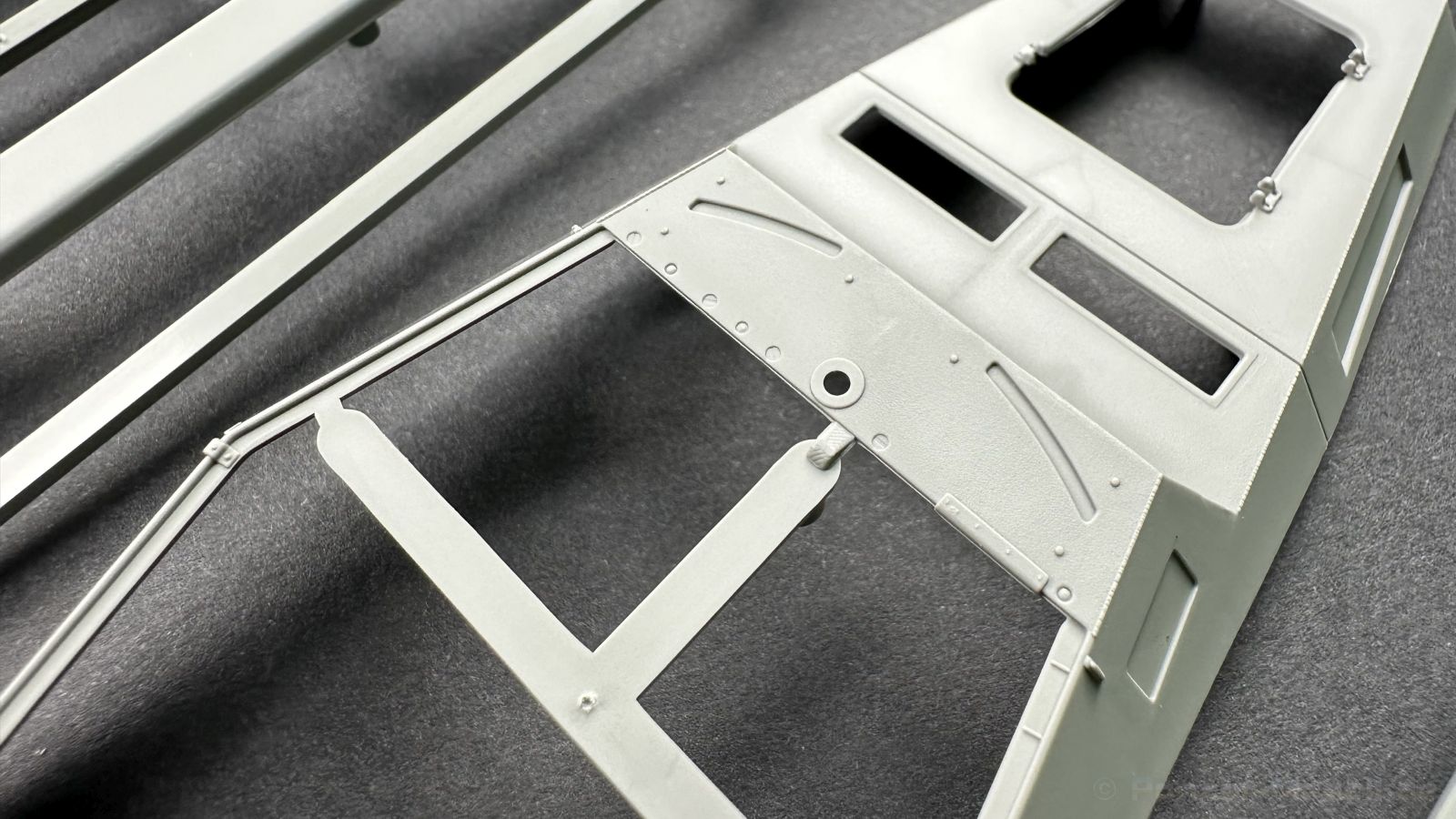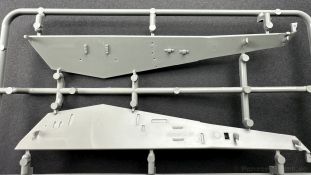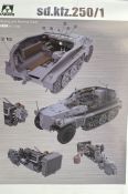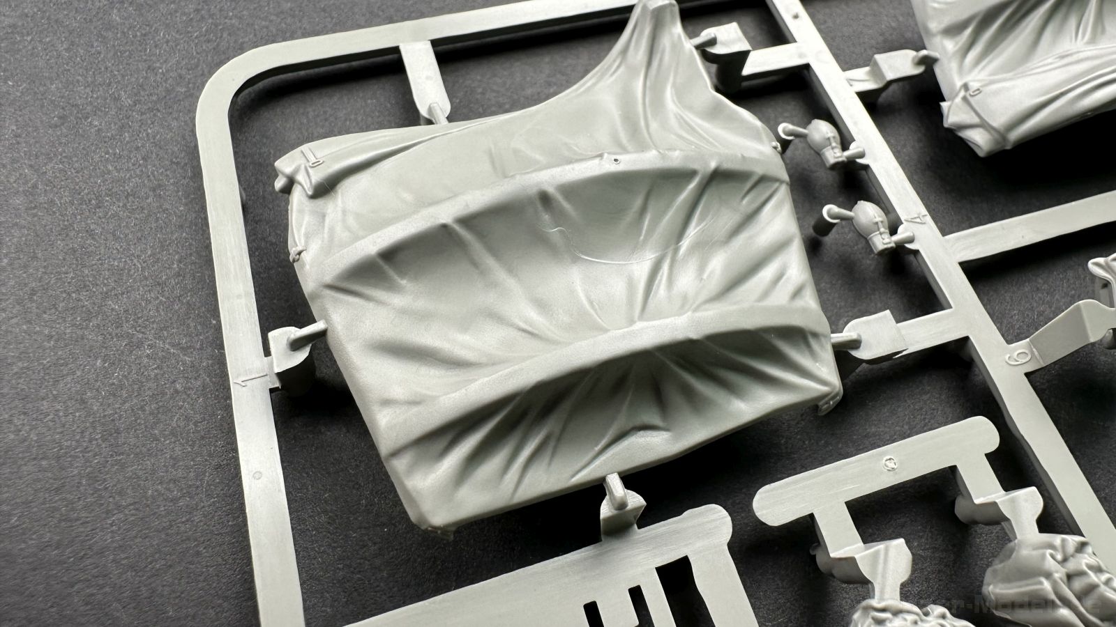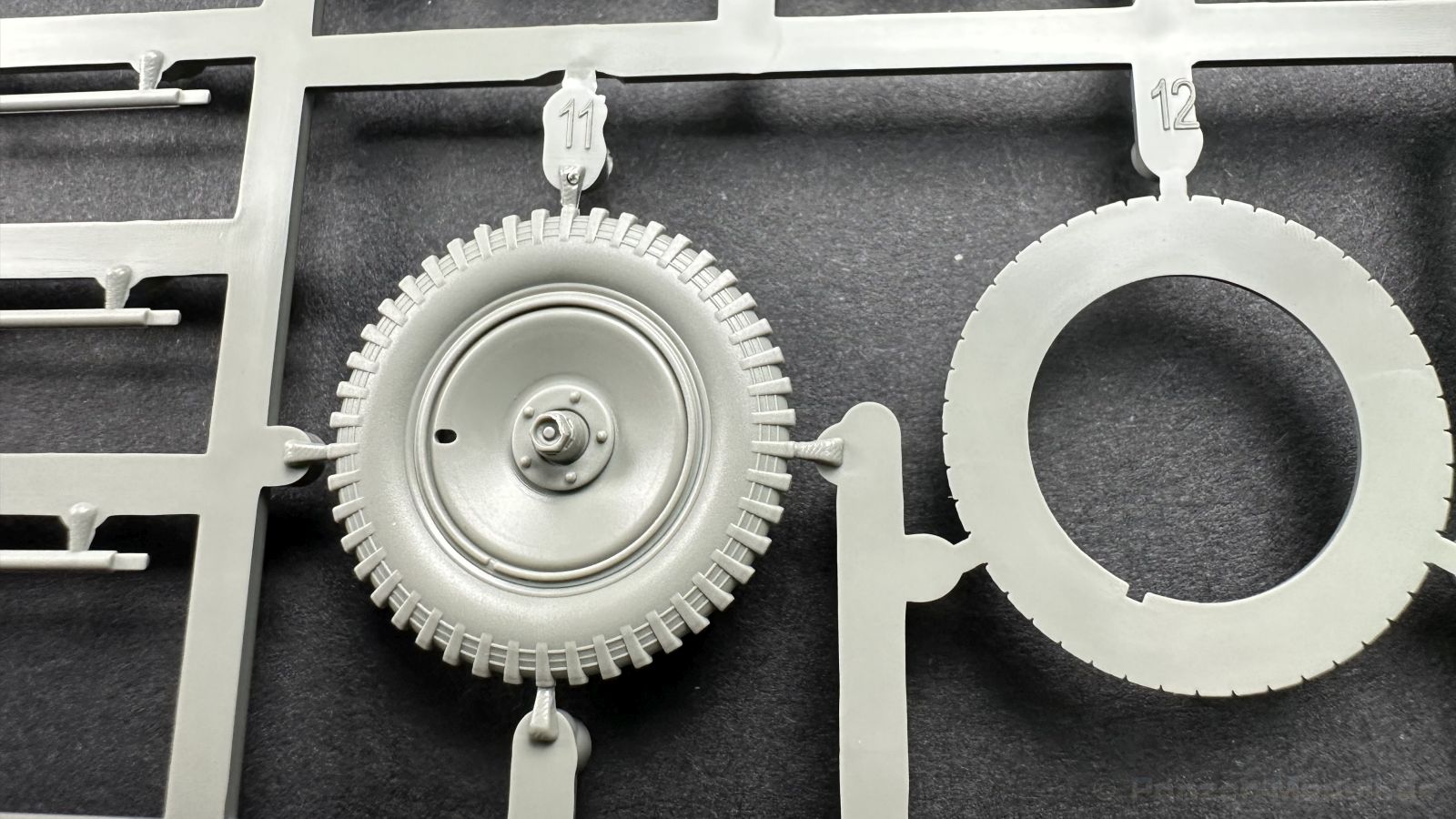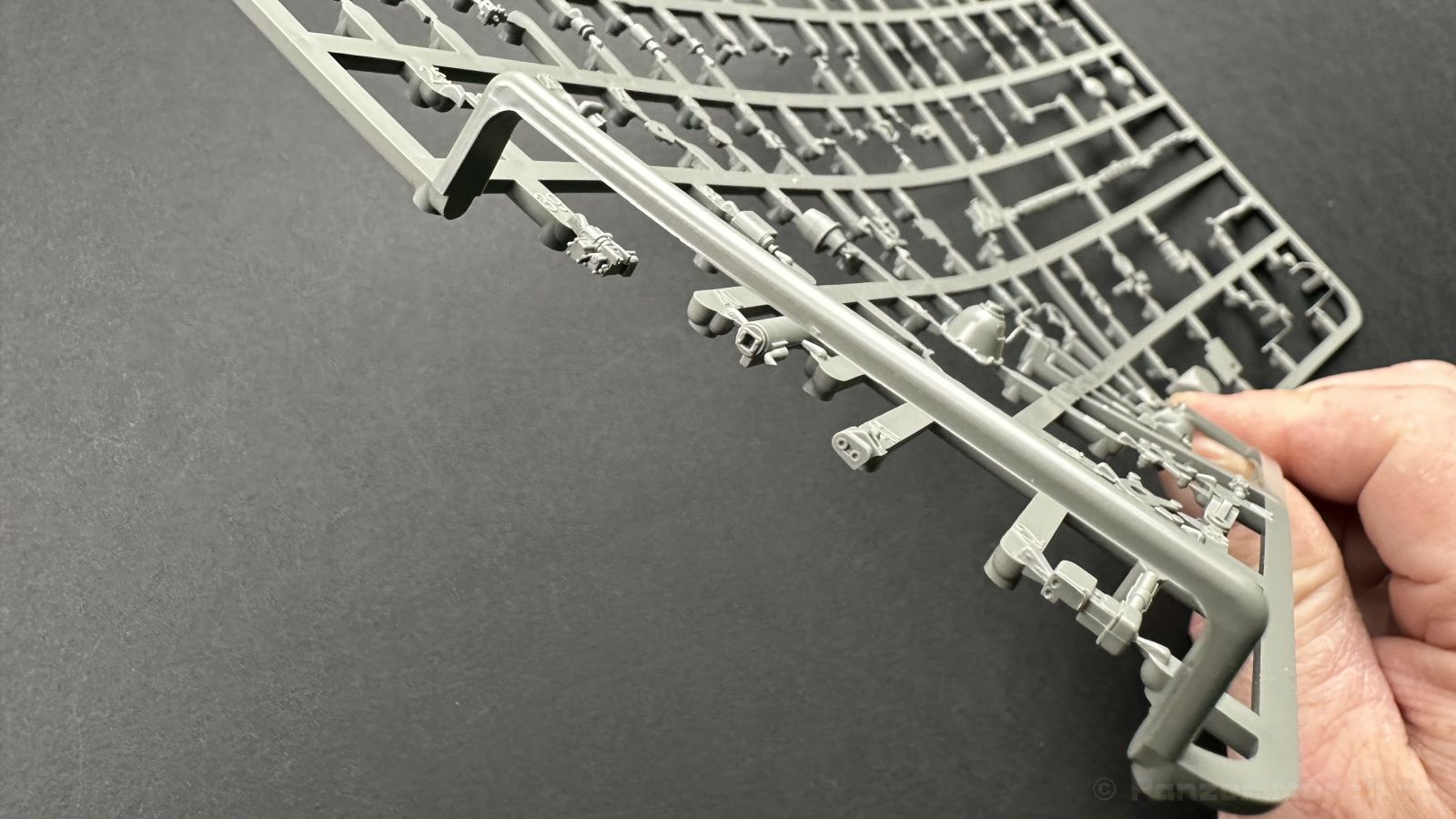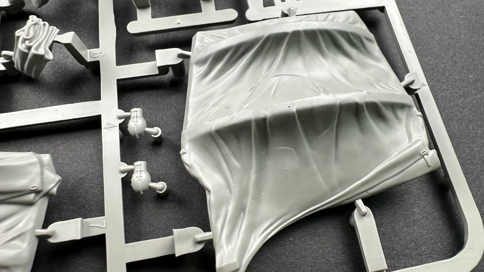 Es hat lange gedauert bis sich ein Hersteller an eine neue Version des kleinen Bruders des „251“ gewagt hat. Zuletzt haben wir ein Bausatz des Sd. Kfz. 250 Alte von Dragon erhalten das noch Wurzeln bei Gunze Sangyo aus den späten 1980 / frühen 1990 Jahren hatte. Kommen wir zu den Eckdaten. Wir finden in dem Takom typischen hellen Kunststoff insgesamt: - 12 Spritzlinge Die Anleitung gliedert sich in 27 Baustufen. Auf den ersten Blick finden wir hier einen Bausatz absolut auf der Höhe der Zeit was Details, Gravuren und Ausstattung angeht. Die Anleitung startet mit dem Zusammenbau der Details in der Wanne, erfreulicherweise ist die Wanne einteilig. Die Details in der Wanne sind Top, leider verschwindet davon das meiste unter dem Kampfraum bzw. der Abdeckung. Apropos der Kampfraumboden, leider sind hier viel zu wenige „Punkte“ aufgebracht die das Warzenblech imitieren sollen. Bei Baustufe 3 ist die Bezeichnung falsch bei Bauteil B4 muss nicht B5 angeklebt werden sondern B9 ! Die Einzelgliederkette muss aus dem Rahmen gelöst werden, ein wenig versäubert werden und wird, wenn wirklich sehr wenig dickflüssiger Kleber auf dem Laufpolster verwendet wird sogar beweglich. Die Reifen werden in Sandwichbausweise / Scheiben zusammengeklebt, dadurch erhalten wir ein großartiges Profil. Leider fehlen bei den Laufrollen und dem Vorderädern sämtliche Herstelleraufdrucke. Das Getriebe ist wirklich sehr schön detailliert, leider ist die Position im Fahrzeug nicht ganz richtig, das Getriebe müsste auf Höhe des 1. Laufrades befinden. Leider hat Takom hier nicht richtig gearbeitet. Eine Korrektur wird schwierig da der Fußraum dann nicht mehr passt und alle Anbauteile dann nicht montiert werden können. Ein Motor ist ebenfalls enthalten, auch hier finden wir eine tolle Detaillierung vor, ein wesentlicher Gewinn wenn wir an Dragon denken die auch einen Motor haben der allerdings nur rudimentär detailliert ist. Bauteil F12 kann getrost entsorgt werden, die beiden Ersatzlaufbehälter für das MG34 sind viel zu klein. In Bauschritt 17 muss der Feuerlöscher gerade montiert werden und nicht wie in der Anleitung gezeigt schräg. Ein Highlight vom Bausatz sind die Planen und die Beladung, hier fallen die großartigen Gravuren und Details ins Auge. Schön ist ebenfalls das Takom eine passende Fahrer Figur mit ins Modell gepackt hat. Ebenfalls großartig sind die 3 verschiedenen Abdeckungen / Planen für den Kampfraum, hier habt ihr die Auswahl von ganz, halb oder dreiviertel ausgerollt, auch hier fallen die Details, Faltenwurf und Co auf. Man könnte jetzt ja Unken und das begründen das man sonot nicht die Fehler in der Innenraumaufteilung sieht.. An Decals hat Takom insgesamt 4 Varianten gedacht, alle in Panzergrau gehalten: - Kradschützen Battalion GD , Army Group South , Summer 1942 Erfreulich ist ebenfalls das wir ein Farbprofile für die Bemalung des Innenraums / Motorraum vorfinden. Leider alles ohne Farbangaben. Mein Fazit fällt leider total durchwachsen aus. Auf der einen Seite ein Bausatz auf der Höhe der Zeit mit richtig viel Zubehör wie EZK, Fahrer, Beladung, Plane etc. anderseits grobe Schnitzer bei den Details und der Aufteilung im Innenraum. Interessant ist natürlich der mehr als günstige Preis von unter 30 Euro