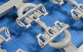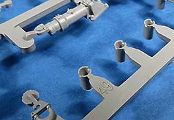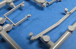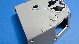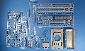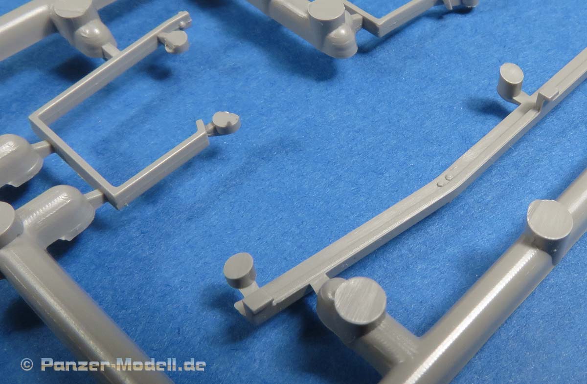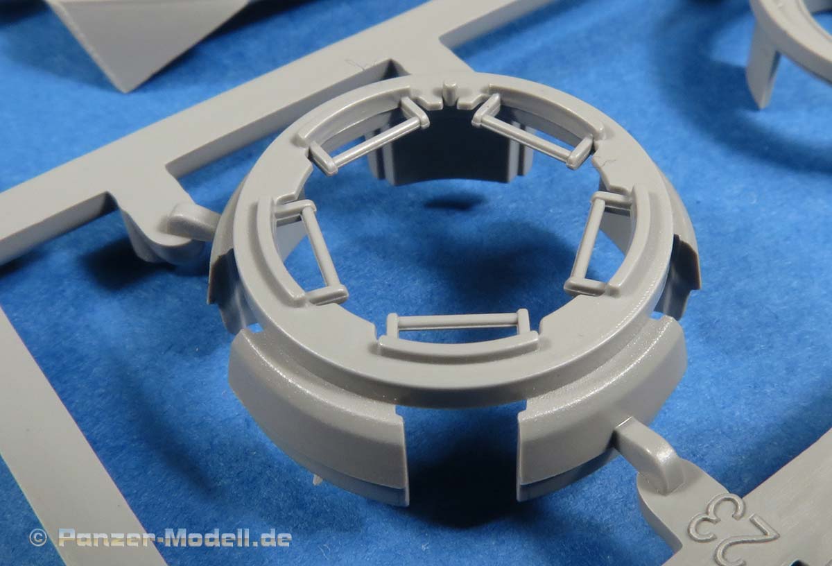 Die Turmschützen sind aus dünn gespritztem Plastik gemacht - das abgerundete Heckteil ist in einem Stück gemacht. Die seitlichen Luken lassen sich offen oder geschlossen bauen. Die gewinkelten Halterungen sind ebenfalls aus Plastik.