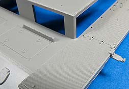 Die Unterwanne ist einteilig ausgeführt, was den Baufortschritt enorm beschleunigt und gerade für Anfänger ein großes Plus ist. Die Details an dieser einteiligen Wanne sind trotzdem sehr gut und fein ausgeführt, dass es eine wahre Freude ist.