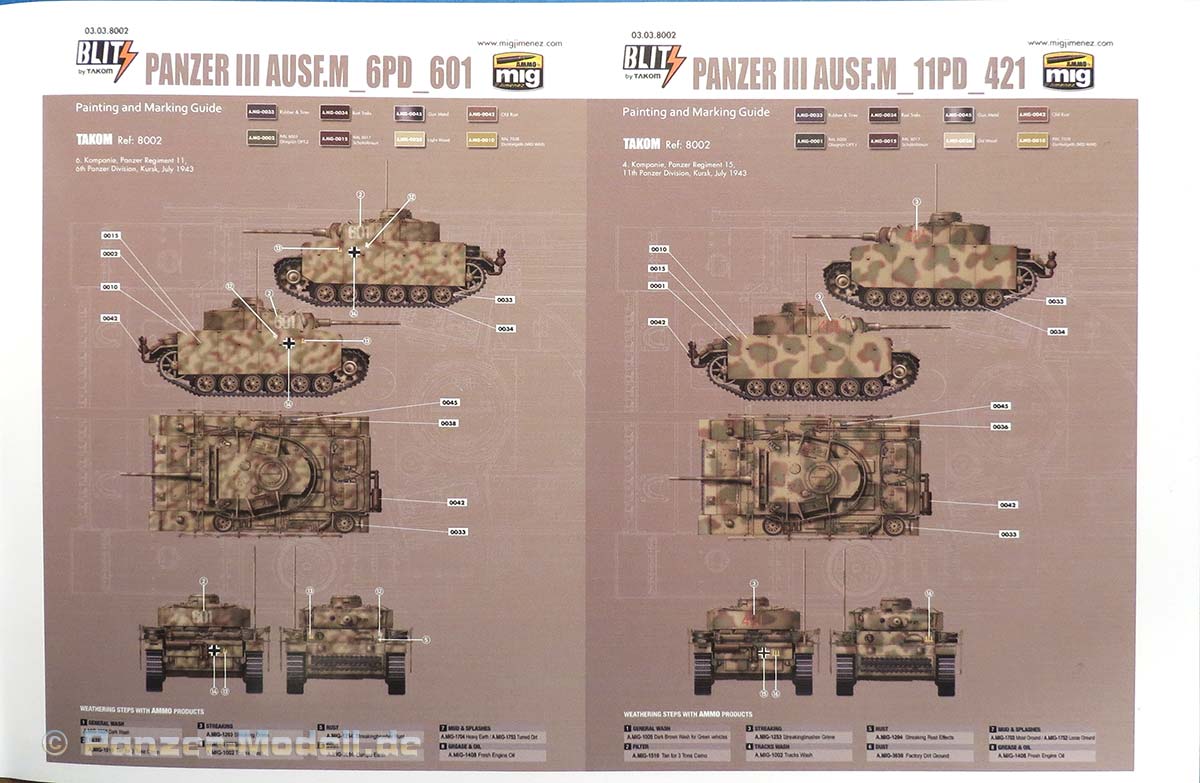 Auf den letzten Seiten sind dann 4 farbig gedrucktes Farbprofile abgedruckt, als Bemalungs und Markierungshilfe.
