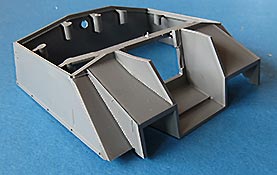Die Heckplatte weist alle richtigen Details auf, die auch fein dargestellt sind. Die Auspufftöpfe sind die Standardausführung und das Luftauslassgitter liegt ebenfalls als PE Teil bei.