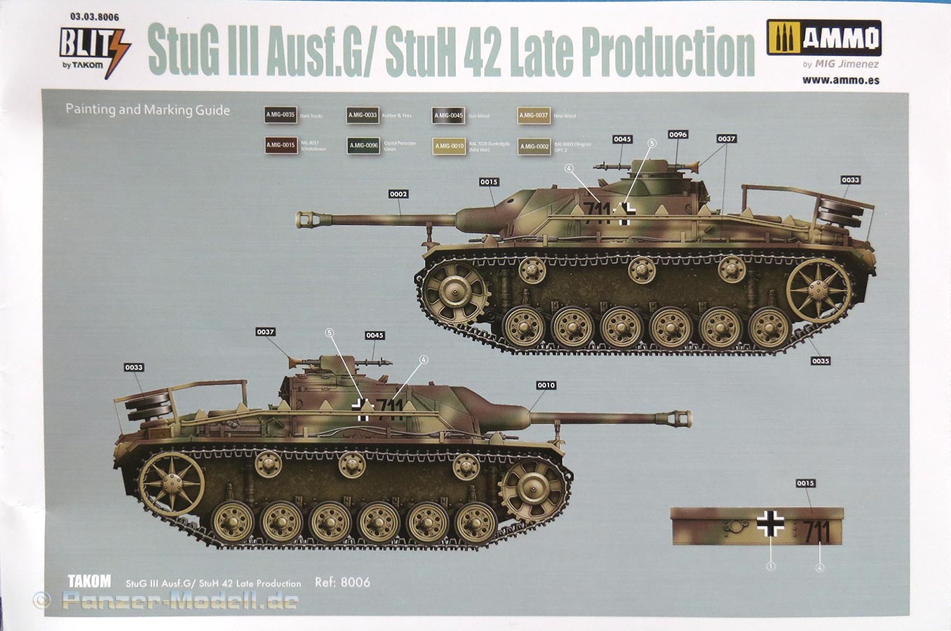 - StuG III Ausf.G, Nummer 711, in Dreifarbtarnung