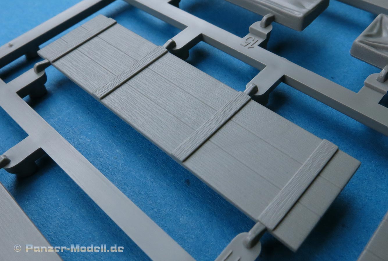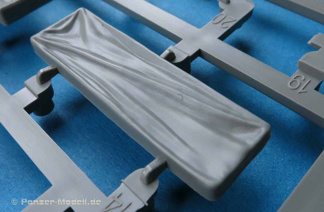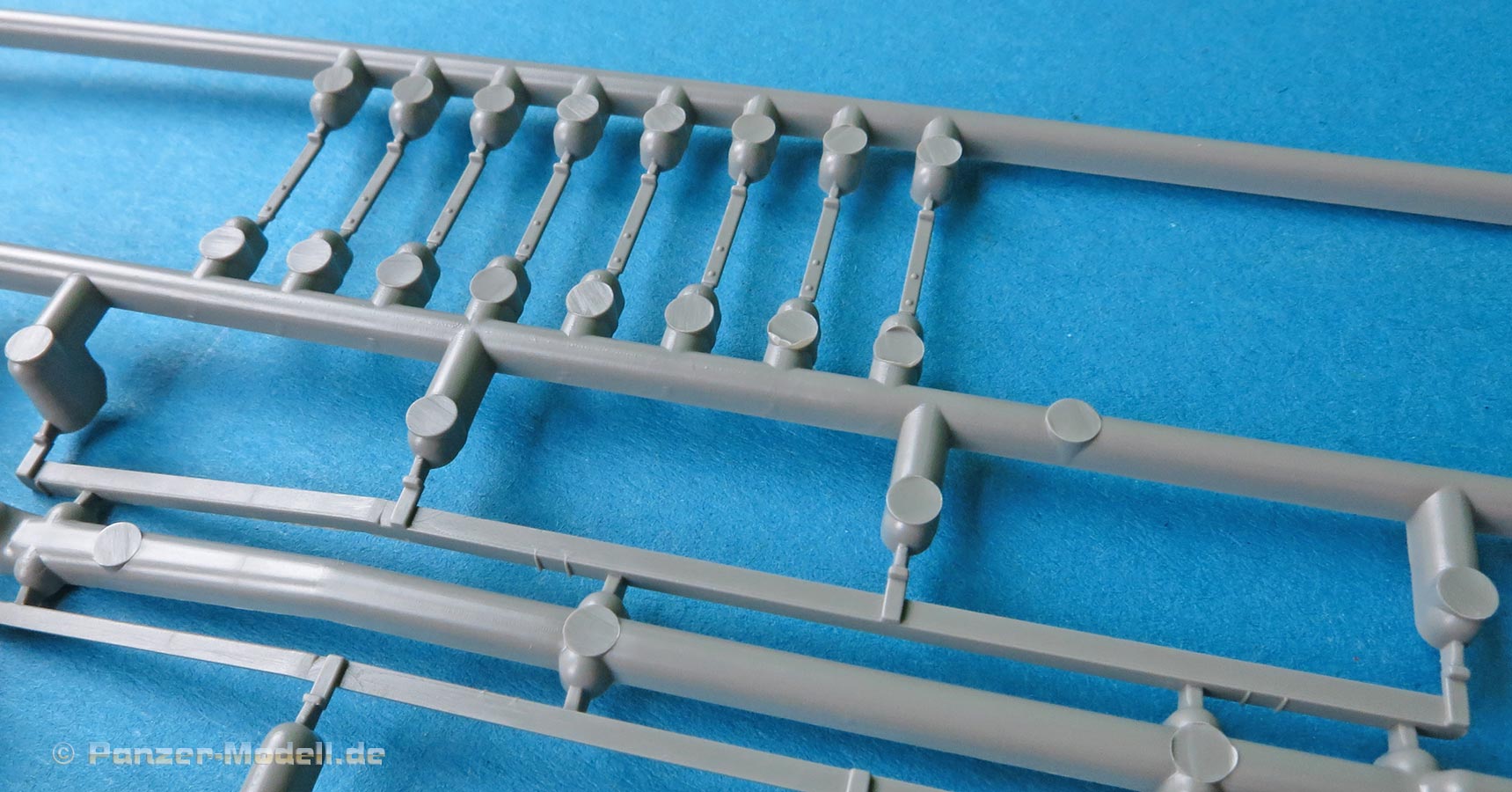 Die Teile sind sauber ausgespritzt, mit scharfen Details, ohne Versatz und Verzug. Angüsse sind so angebracht, dass ein Abtrennen der Teile einfach und ohne große Nacharbeit vonstattengehen sollte.