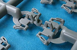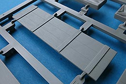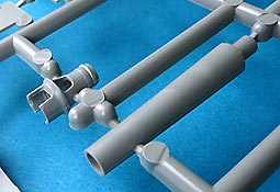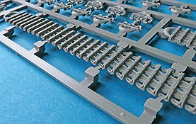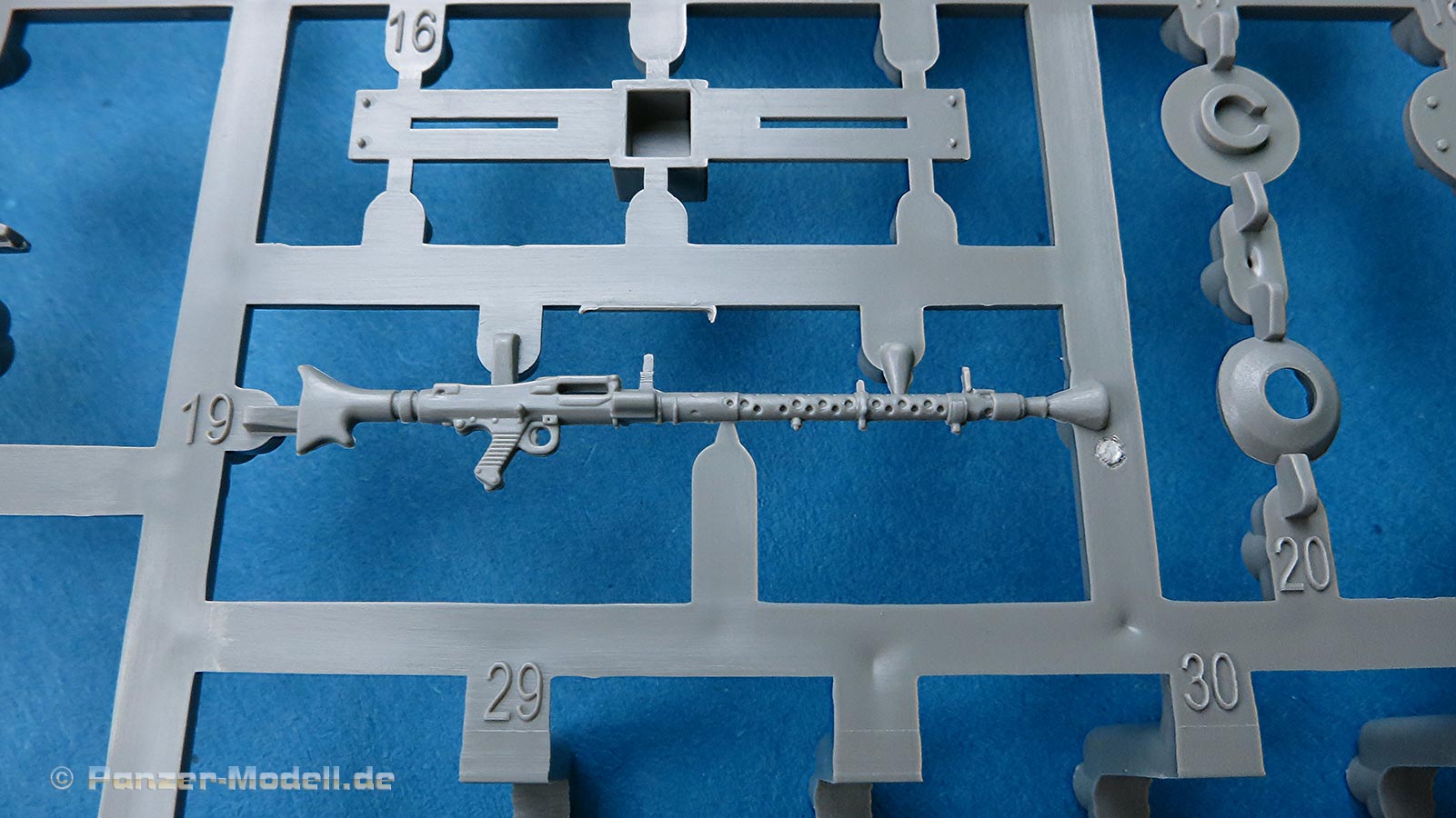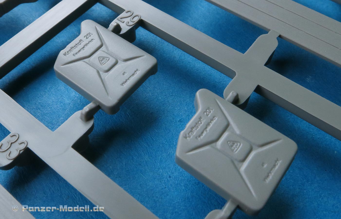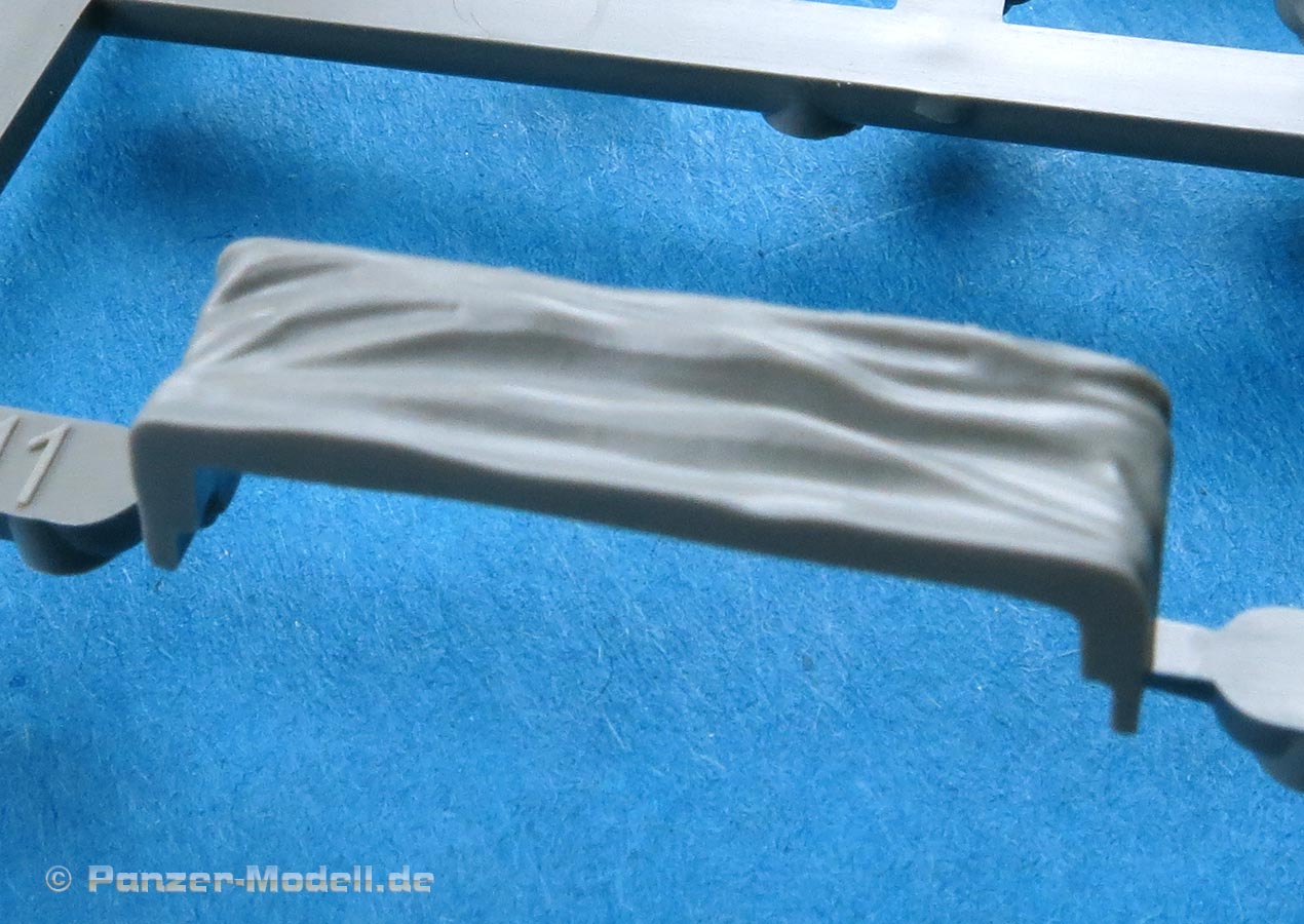 Die Teile sind sauber ausgespritzt, mit scharfen Details, ohne Versatz und Verzug. Angüsse sind so angebracht, dass ein Abtrennen der Teile einfach und ohne große Nacharbeit vonstattengehen sollte.