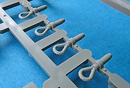 Die Abschleppseile liegen als ein Teil samt angegossenen Klemmen und Halterungen vor, machen einen großartigen Eindruck und werden auf dem Heck angebracht.