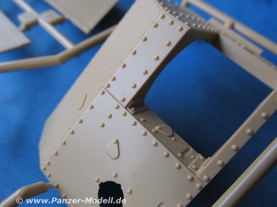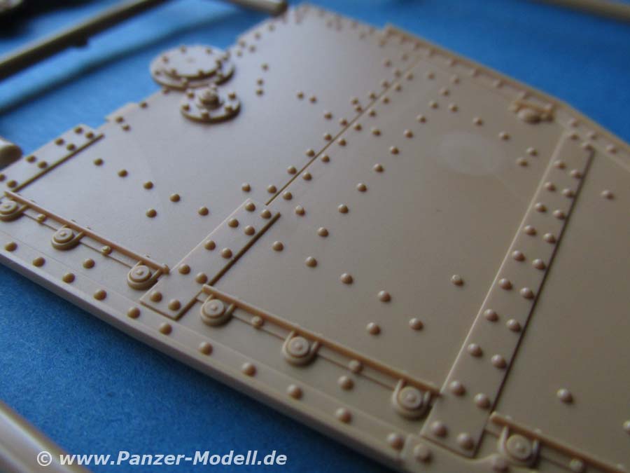 Die Machart der Bauteile ist exzellent ohne Gussfehler und mit feinen Details. Gerade die großen Wannenteile aus denen man die Wanne zusammenbauen muss, wissen zu gefallen und hier insbesonders die Massen an Nieten und Details.