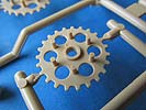 Die meiste Arbeit dürfte die konstruktion des Laufwerks sein - hier sind an der Front zunächst Zahnräder aus Plastik einbaubar und dann 52 Doppellaufrollen Paare zusammen- und anbauen.
