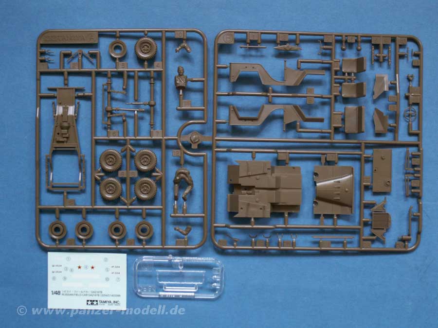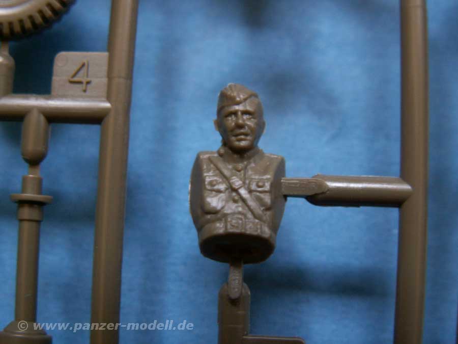 Schön auch die Beigabe einer sitzenden Soldatenfigur und der Klarsichtteile der Scheinwerfergläser und der Windschutzscheibe.