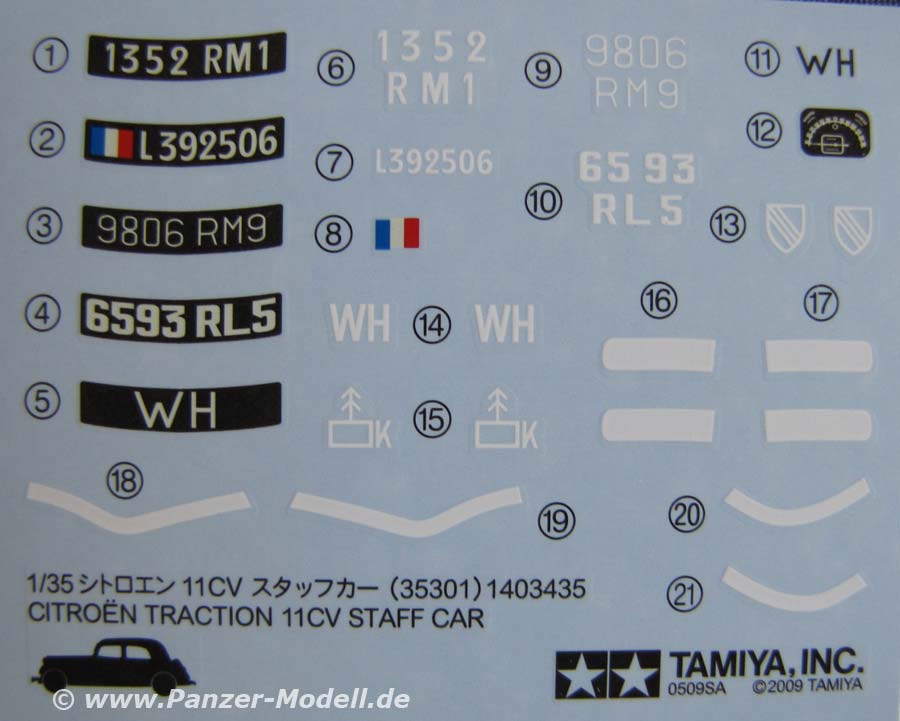 Im Vertrieb von Dickie-Tamiya Schon kommt Tamiya mit dr nächsten echten Neuheit heraus - mit der Nummer 35301 gibt es nun den Citroën Traction 11CV Staff Car.Im Karton finden sich 3 Spritzlinge, die Karosserie, Polycaps und natürlich ein Decal Bogen. Tamiya schlägt hier einen erfreulichen Weg ein, der sich hoffentlich auch auf andere Hersteller überträgt, denn PKW und LKW in miltärischen Diensten gibt es einfach noch viel zu wenig. Erfreulich, dass man sich hier des Themas nun auch in 1:35 angenommen hat und dies auch so schön umgesetzt hat! Die Qualität der Teile ist wieder von typischer Tamiya Qualität: sauber gespritzt, keine Auswerferstellen und schöne Details. Die Karosserie ist im Großen und Ganzen komplett und angenehmerweise so konzipiert, dass die Türen auch offengelassen werden können! Der Innenraum ist relativ spartanisch, was aber wohl auch im original so war. Die Sitze sind mit der Polsterung gut dargestellt. Die Reifen bestehen aus insgesmt 3 Teilen und weisen ein sehr feines Profil auf. Und dank Polycaps bleiben die Reifen auch beweglich. Der Kühlergrill ist mit den Rippen fein dargestellt - leider nicht offen. Besonders schön ist die Fahrerfigur eines deutschen Soldaten getroffen. Feine details, gute Gesichtszüge und von der Pose exakt passend auf den Fahrersitz mit einer Hand am Lenkrad! Die Bauanleitung erfreut im üblich guten Tamiya Stil. 8 Baustufen mit gut verständlichen und sauberen zeichnungen lassen kaum Fragen offen. Dazu bietet dann die Bemalungsanleitung mit den Decals die Möglichkeit eines von 5 Fahrzeugen zu bemalen/markieren: - Pionier Kompanie, 112. Inf. Div., Wehrmacht, Ostfront in dunkelgrau - Franz. Armee, früher 2.WK in olivgrün - Franz. Zivilwagen, im 2.WK in schwarz - unbekannte Einheit, Wehrmacht - Franz. Zivilwagen, im 2.WK (vorige Version vor Nutzung durch Wehrmacht) Ein schöner Hinkucker, der sowohl Zivilfahrzeug- als auch Militärfahrzeugfans begeistern dürfte. Die Möglichkeit diesen mit Fahrer oder mit offenen Türen zu bauen macht einiges her und dürfte sich auch in so manchem Diorama gut machen. Kostenpunkt: Etwa 20 Euro Das Modell ist bei dem Modellbaufachhändler eures Vertrauens zu bekommen. |