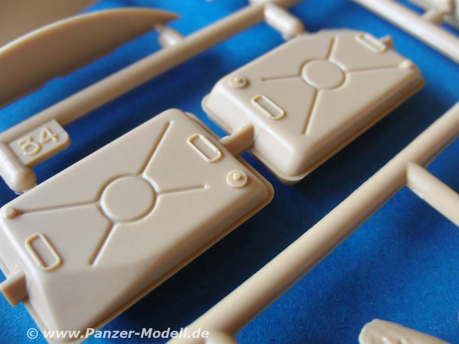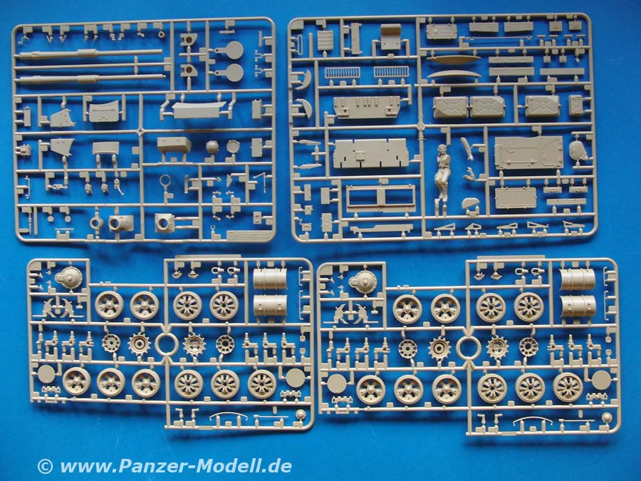 Wenn man den eingedruckten Daten auf den Spritzlingen glauben darf, dann sind nur noch die Unterwanne und die beiden Spritzlinge des Laufwerks vom ursprünglichen T-55 - die Oberwanne, Turm und Zubehör sind allesamt neu und den Gegebenheiten und Eigenarten des Tiran 5Sh angepasst