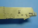 Als nächstes wird die Unterwanne vorbereitet. Der Wannenboden ist glatt ohne Details. An den Wannenseiten sind 4 Schwingarme, die Achsen des Antriebsrades und der Stützrollen und der Kettenspanner angegossen. Die Vernietung der Wannenteile gefällt mir. Die angegossenen Details kommen gestochen scharf zur Geltung. Die ebenfalls vernietete vordere Frontplatte wird eingeklebt. Mittig erhält sie ein "Auge" mit einem Schäkel. Auf die Achsen der Antriebsräder werden die Seitenvorgelege aufgeklebt. An den sichtbaren Innenseiten finden wir schön dargestellte Verschraubungen. Die Federaugen der mittleren Federn werden an die Wanne angeklebt, darüber kommt die Federabdeckung. Die mittleren Federn sind nicht als solche vorhanden, da die Abdeckung diese sowieso voll umgibt. Dann montiert man noch Spiralfedern aus dem ersten Bauabschnitt. Die Kettenspanner werden mit einem Winkel geschlossen, an dem sich eine deutlich erkennbare Befestigungsschraube befindet.