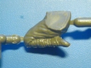 Interessant ist der stürmende Soldat mit dem 50mm Type 89 Kniemörser. Den Mörser habe ich früher für ein Pioniergerät gehalten, da mir so etwas als Waffe noch nicht untergekommen war. Auch dieser Soldat besteht wie der Offizier aus den beiden Armen, dem Oberkörper mit Kopf und der Hüfte mit den Beinen. Wie die beiden anderen Soldaten trägt er Kampfschuhe mit kniehohen Wickelgamaschen. Seine Ausrüstung besteht aus dem 50mm Type 89 Kniemörser, den er in der rechten Hand hält. Dazu trägt er auf dem Rücken sein Gewehr. Auch wenn der Gewehrriemen quer über die Brust des Soldaten läuft, so muss man doch den Riemen von der Figur zum Gewehr noch selbst herstellen, sonst schwebt es auf wundersame Weise auf seinem Rücken. Weitere Ausrüstungsgegenstände sind 2 große Munitionstaschen vorn am Koppel für die Mörsermunition. Seitlich links am Koppel kommt das Bajonett und eine Feldflasche. Der Flasche folgt eine Munitionstasche für die Gewehrmunition. Hinten am Koppel wird der "Brotbeutel" befestigt.