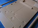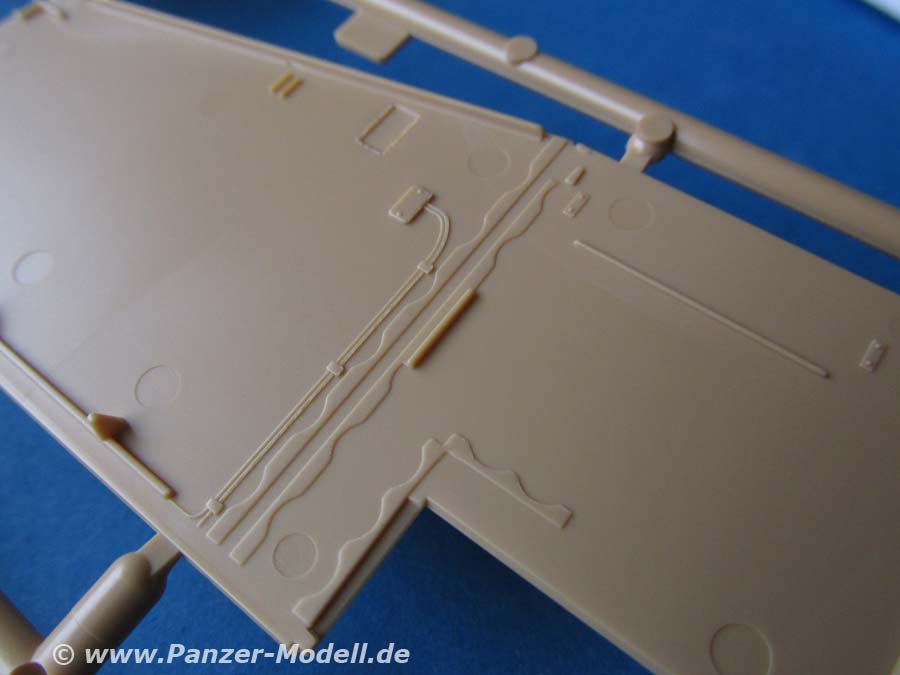 Die Aufbaupanzerung besteht in der Hauptsache aus den zwei großen Seitenteilen. Diese haben auf der Innenseite bereits manche Details mit aufgeprägt, aber leider auch so manche Auswerferstelle, die man noch füllen und verschleifen müsste.
