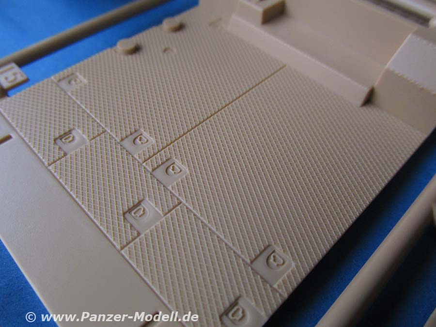 Das Gleiche gilt für die Bodenplatte des Kampfraums, auf dem ein Rautenmuster und auch die verschiedenen Bodenbleche mit Handgriffen aufgeprägt sind.