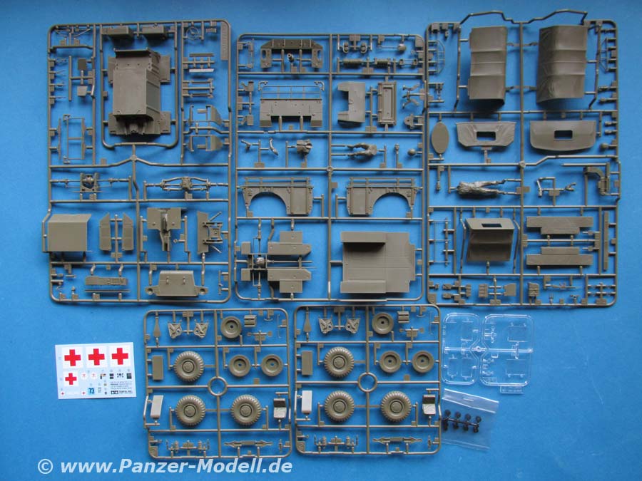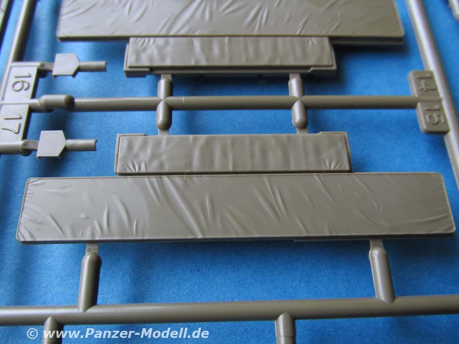 Die Qualität der Teile ist wie von Tamiya gewohnt sehr gut und vor allem sehr sauber. Verzug, Fischhäute oder Sinkstellen sucht man vergeblich.