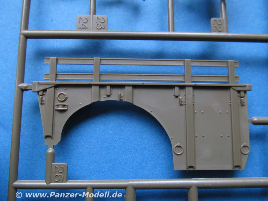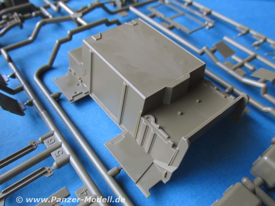 Die Unterwannen beider Fahrzeugteile sind in einem Teil gefertigt in die die Laufwerksteile und Achsen eingesetzt werden. Nach dem Zusammenbau der Vorderachse scheint ein Lenkeinschlag der Vorderräder nicht vorgesehen zu sein.