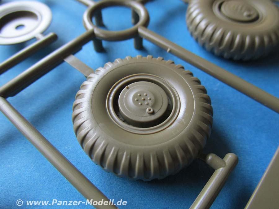 Alle Räder sind komplett aus Spritzguss und zweiteilig zusammenzusetzen. Dank Polycaps bleiben diese nach dem Aufstecken drehbar.