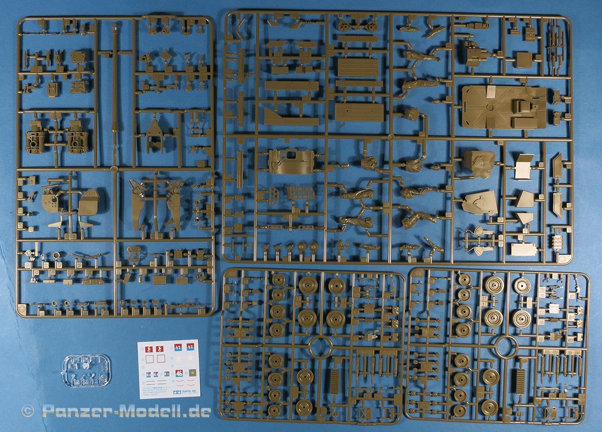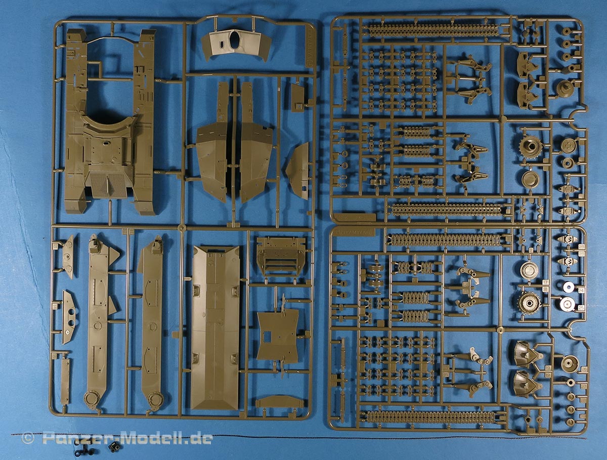 Die Qualität der Teile ist wie von Tamiya gewohnt wieder einmal sehr gut und vor allem sehr sauber. Verzug, Fischhäute oder Sinkstellen sucht man vergeblich.