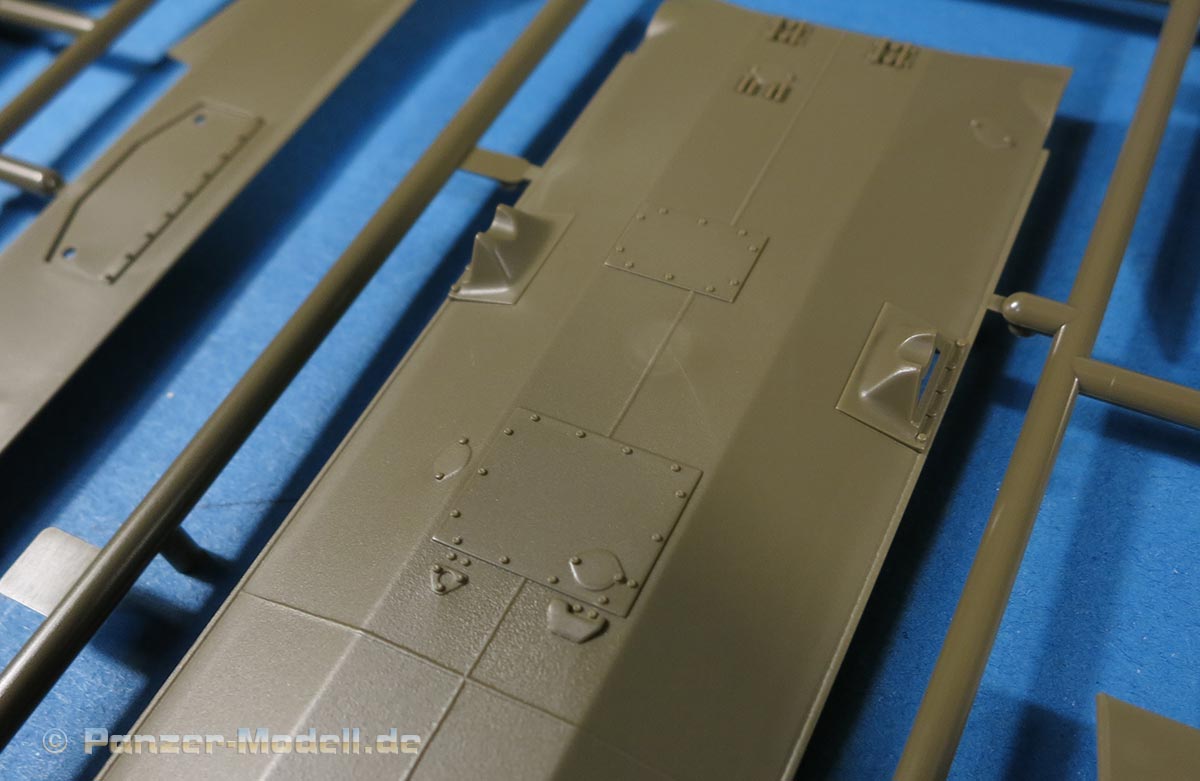Ober und Unterwann beieten schöne und knackscharfe Details, wie die Nieten, Luken und Motorlüftergitter. Sicher wären PE Teile dazu noch schön, aber auch ohne macht das ganze schon einen guten Eindruck.