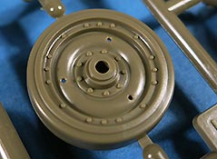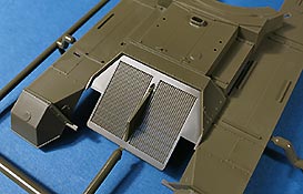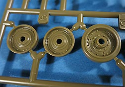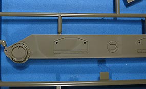 Das Laufwerk ist recht spartanisch mit den verschieden großen Laufrollen und den vier Laufrollenschwingen mit Spiralfedern. Die Ausführung dieser Bauteile ist sehr gefällig und mit recht schönen Details dargestellt. Das Laufwerk bleibt nicht beweglich, aber das ist auch gar nicht notwendig, denn die beiliegenden Segmentketten lassen eh keinerlei Bewegung zu.