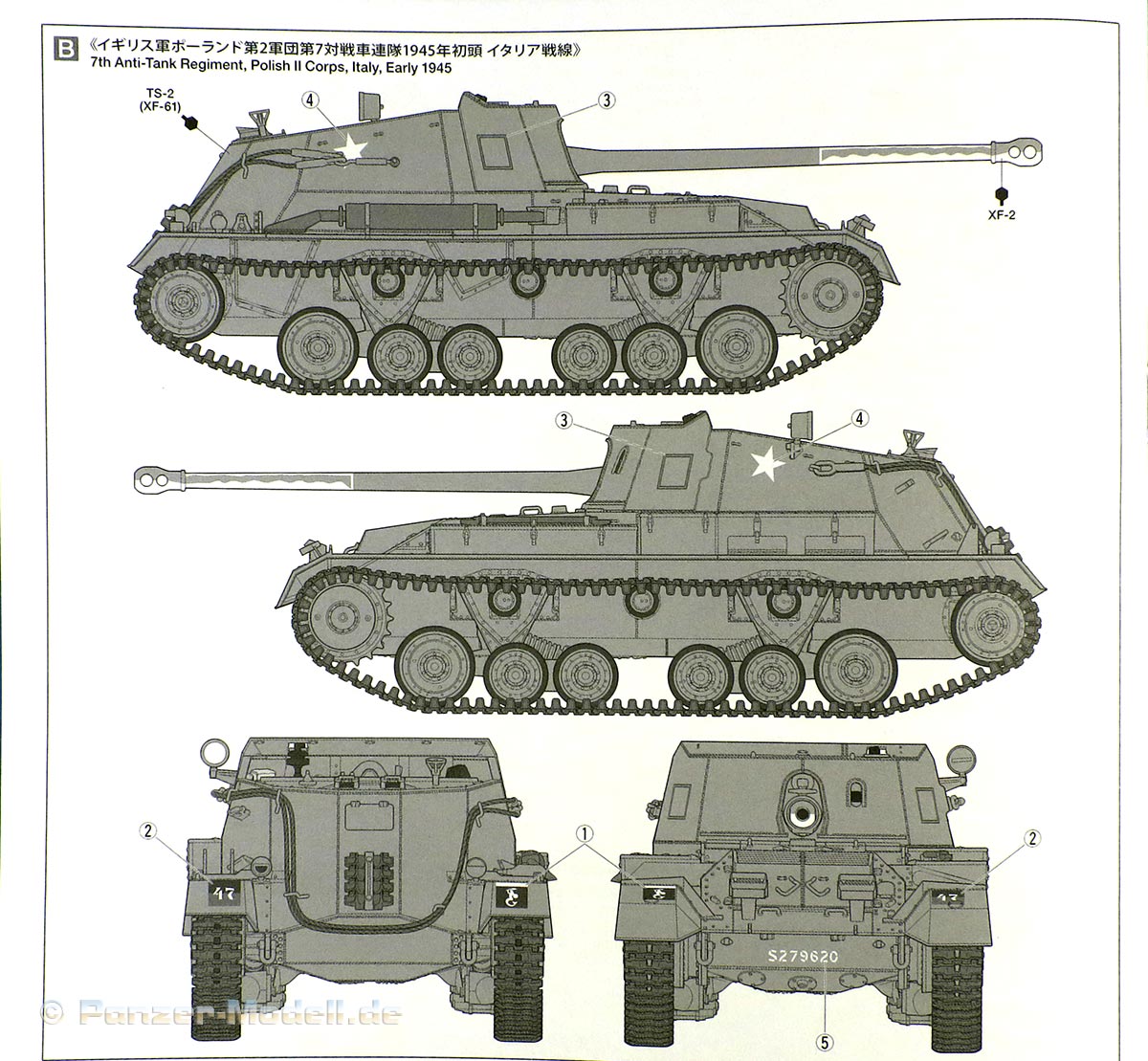 Der Decalbogen und Bemalungsanleitung bieten zwei Möglichkeiten der Fahrzeugmarkierung.