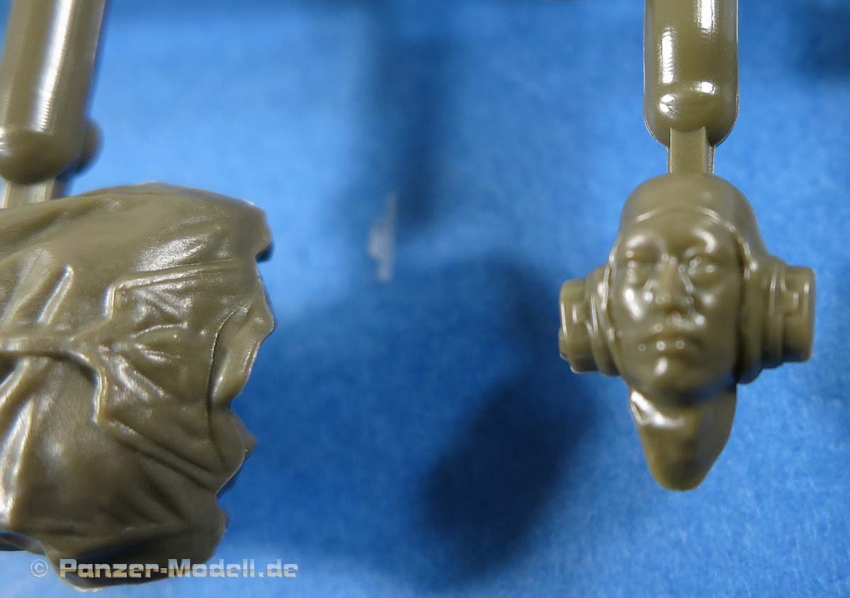 Die beiden Turmluken lassen sich offen oder geschlossen bauen. Erfreulicherweise legt Tamiya bereits zwei passende Figuren in Spritzguss bei fpr die, die die Luken offen bauen wollen. Diese sind recht ansprechend gestaltet und beleben das Modell.