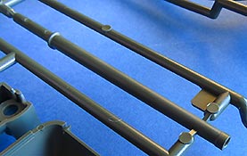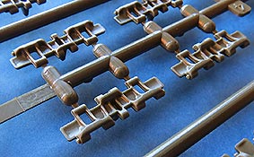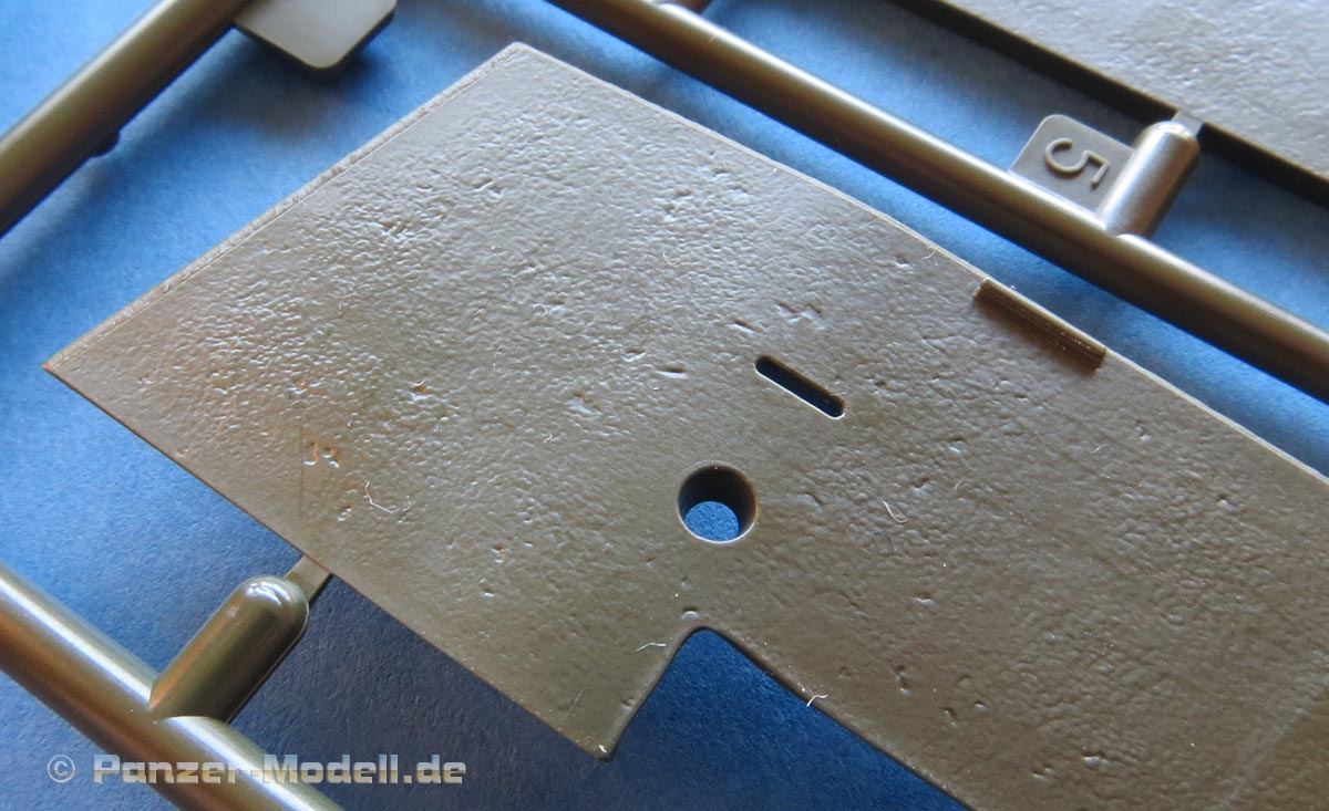 Die Kettenbleche liegen beide einzeln bei und sind ebenfalls sauber und ohne Verzug gespritzt. Die Haltedreiecke werden einzeln angebracht.