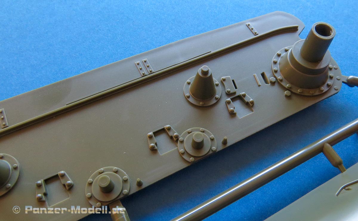Die bisher angesprochenen Großbleche (Seitenwände etc.) sind seh gut gespritzt, sauber, ohne Verzug und bereits mit schönen Details, wie Nieten Schweißnähte, Halterungen, usw. angespritzt.