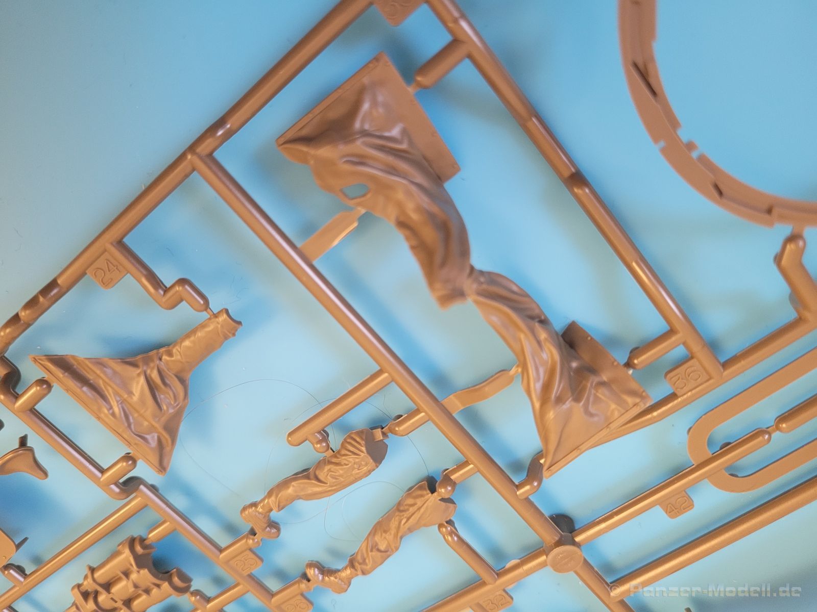 Die einzelnen Spritzlinge sehen wie bei Tamiya typisch hervorragend aus. Es finden sich, natürlich, weder Fischhäute noch Grate an den einzelnen Spritzlingen.