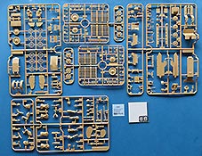 Im Karton finden wir 5 beige Spritzlinge, eine kleine PE Platine und einen kleinen Decalbogen.
