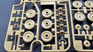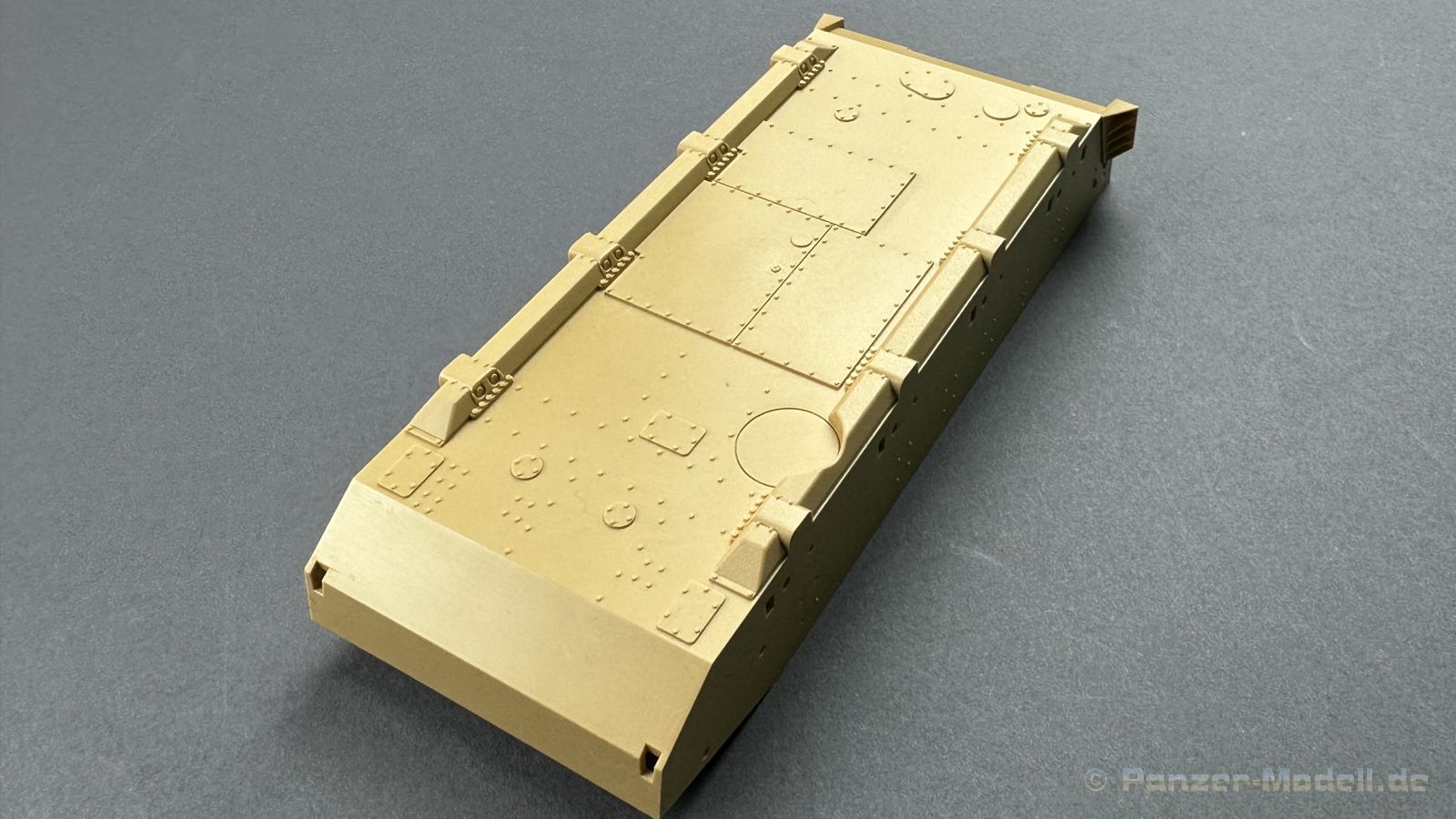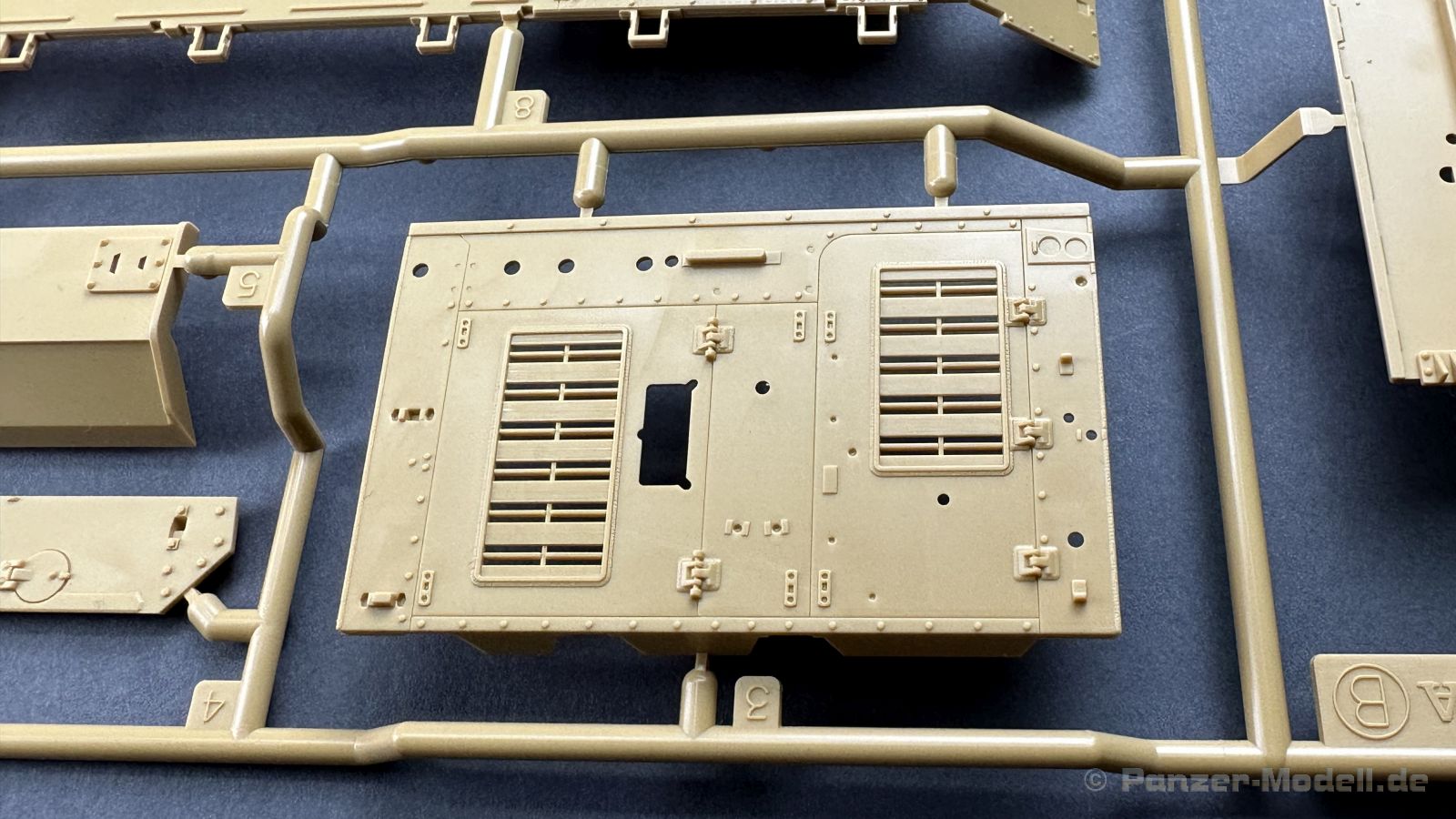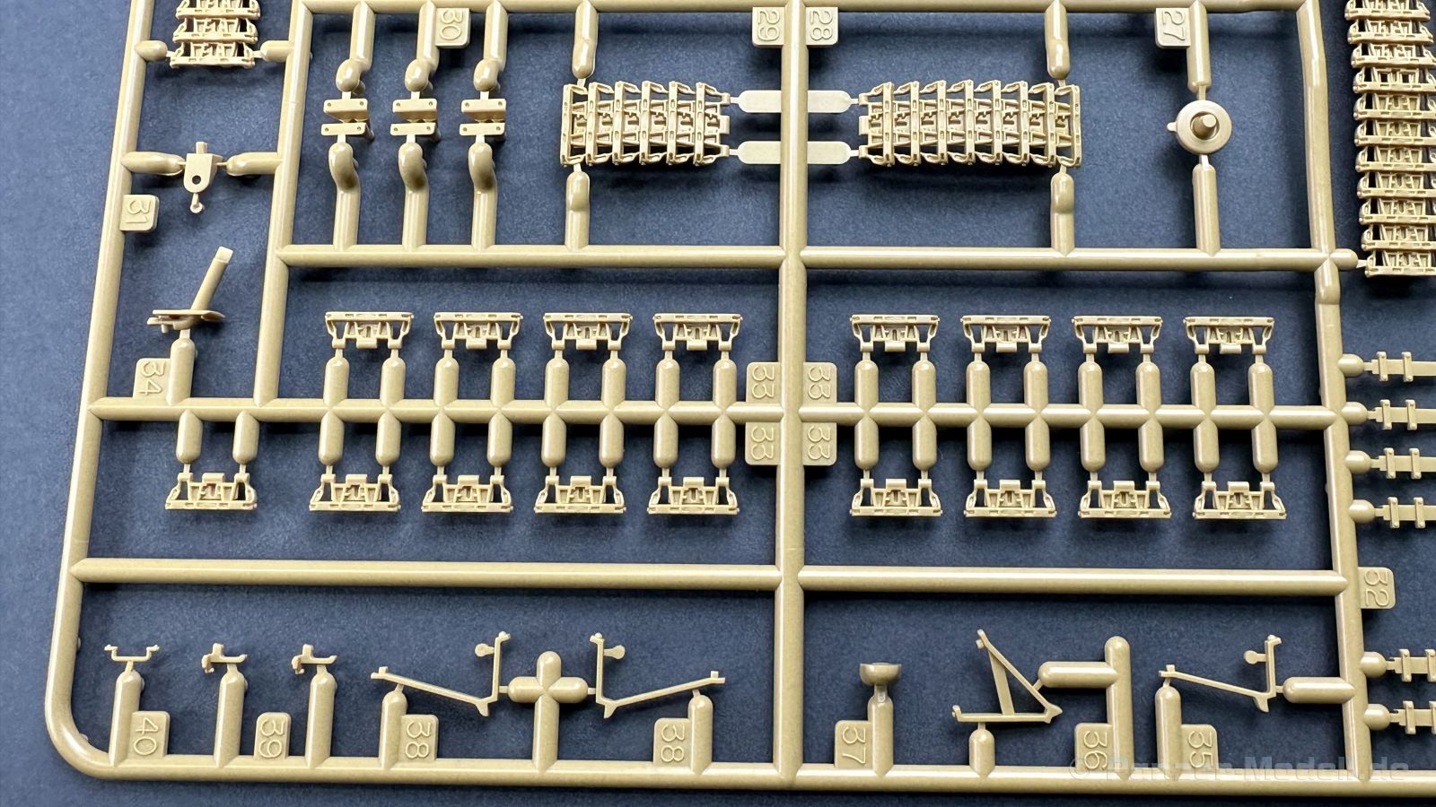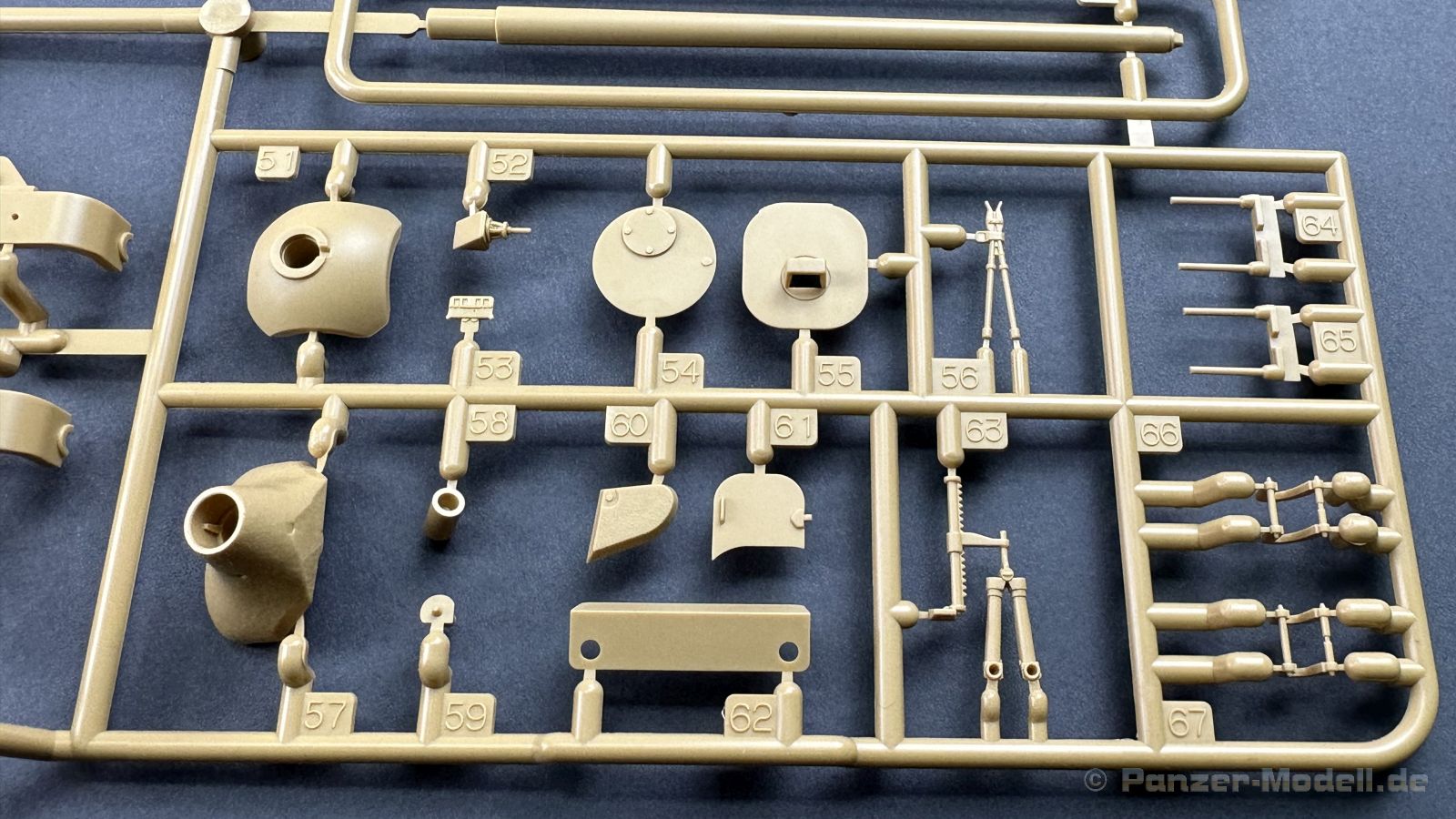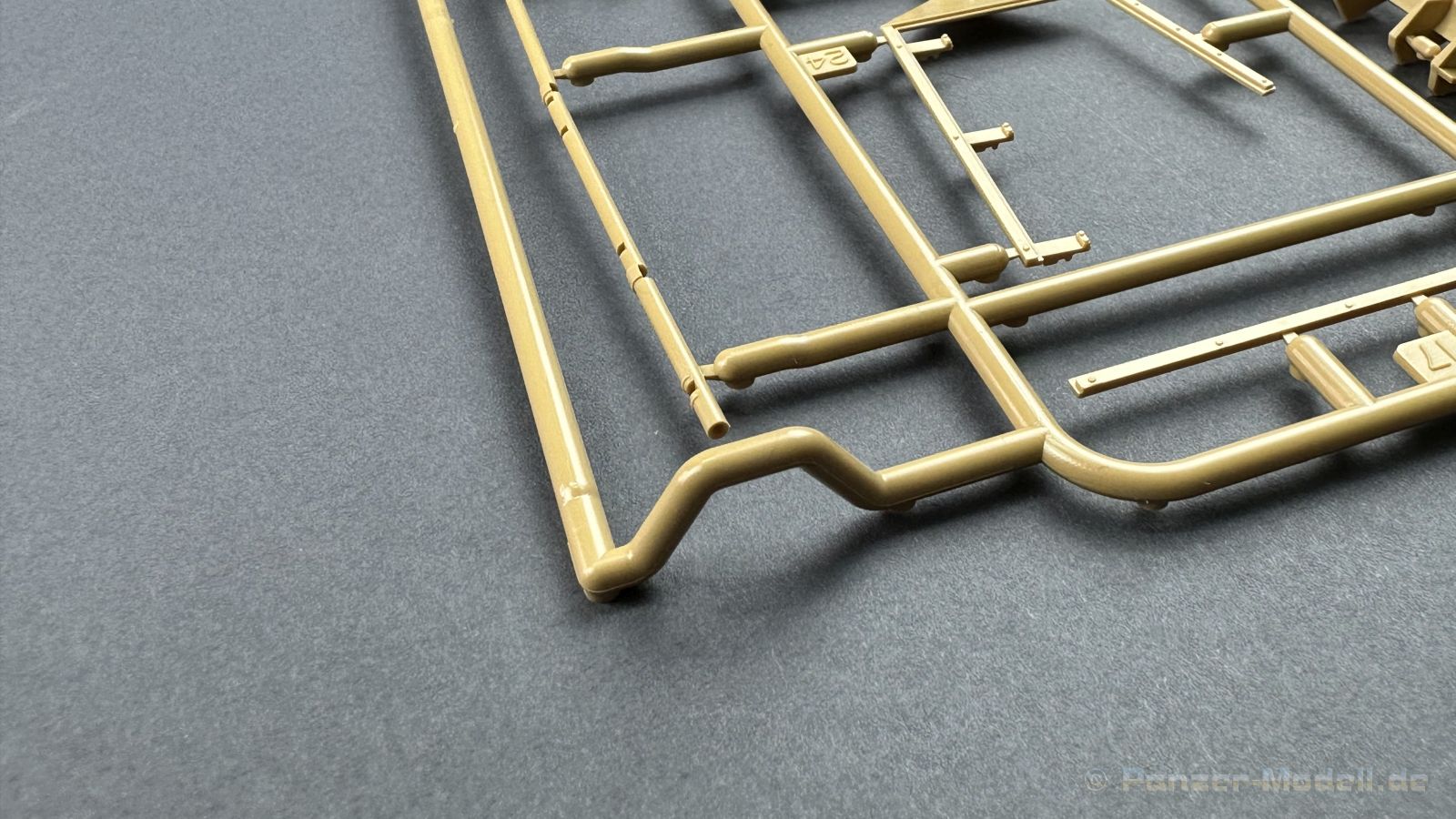 Jagdpanzer IV/70 (A) Schon vor der Spielwarenmesse wurde geleakt das Tamiya wohl einen Jagdpanzer auf Basis von ihrem Panzer IV realisieren möchte, 1-2 „verschwommene Bilder“ tauchten auch auf, aber so richtig wusste halt noch niemand wie der Panzer aussehen sollte bzw. welche Features uns wohl erwarten könnten… Das änderte sich als wir Anfang Februar die Spielwarenmesse zu Nürnberg enterten, da stand die Neuheit von Tamiya in voller Pracht! Doch Neuheit, nun ja sagen wir es einmal so: es ist nur bedingt eine Neuheit, da Teile vom Jagdpanzer vom bereits 2014 erschienen Jagdpanzer IV L70 (V) 35340 sind. Neu ist natürlich der obere Aufbau, der ja für die Alkett Version des Jagdpanzers IV angepasst worden ist und erfreulicherweise sind die übrigen Teile noch einmal einem Facelift unterzogen worden. Als Modell wird hier die Lösung von Alkett mit dem relativ hohem Aufbau dargestellt, da der Panzer IV mit dem Einbau der 7,5 cm KwK L/48 an seine Leistungsgrenze gekommen ist und aufgrund des limitierten Turmkranzdurchmesser keine größere Kanone aufnehmen konnte, wurde nach einer Lösung gesucht die leistungsstarke 7,5cm KwK L/70 zu verbauen. Mit dem Weglassen des Turmes und einer Veränderung vom Panzerkastenaufbau, ähnlich des schon bekannten Sturmgeschütz Konzeptes wurde der Jagdpanzer IV realisiert. Mit dem Bau wurde erst relativ spät begonnen, von August 1944 bis März 1945 konnten immerhin aber noch 277 Exemplare sowie ein Prototyp fertiggestellt werden. Zusammenfassend lässt sich sagen das der Jagdpanzer IV in V und A ein Erfolg war, sofern richtig eingesetzt, die relativ starke Frontpanzerung sowie die sehr starke und präzise 7,5cm L/70 standen dem völlig überlastenden vorderen Fahrwerk ( daher auch die Stahllaufrollen ) Getriebeproblemen und dem permanenten Spritmangel entgegen. Im Bausatz enthalten sind insgesamt: - 7 Spritzlinge - Ätzteilebogen für die Gitterschürzen ( Thomaschürzen ) - 3 Sorten Polycaps - Segmentkette - 1x Figur - 2x Decalvarianten Die Spritzlinge kommen in dem für späte deutsche Fahrzeuge typischen dunkelgelben/beigen Farbton daher und sind, wie es im englischen so schön heißt von den Details crisp – also absolut scharkantig abgegossen. Im allgemeinen gefallen wir die neuen Bausätze von Tamiya spitze, so wird auch hier darauf wert gelegt das wir eine Oberflächenstruktur haben die absolut angemessen ist, Schweißnähte und eine absolut durchdachte Vorgehensweise runden das Bild ab. Die Jungs von Tamiya müssen das Fahrzeug in Saumur mir Adleraugen vermessen haben, so wurden viele Merkmal exakt von diesem Fahrzeug wie die schon genannten Oberflächenstruktur übernommen, ebenso die Kette, welche eine späte, seltene Variante ist. Gut für uns, so kommt etwas Abwechslung auf den Basteltisch. Apropos Kette, hier hat Tamiya wieder sein ganzes können in die Waagschale geworfen, die Segmentkette weist Führungshilfen und eine 1a durchdachte Montage auf. Leider finden sich auf den Gummibandagen der hinteren Laufrollen keine Herstellerangaben wie Semperit, Fulda und Co auf, ich finde das könnte man in 2023 besser machen, zumal beim Original vermessen Fahrzeug in Saumur eben jene Daten zu sehen sind. Eine Figur , bzw. eine ¾ Figur liegt dem Bausatz ebenfalls bei, in Tamiya typischer Pose, relativ neu sind die modulare Bauweise ähnlich dem Dragon Gen 2 Konzept, ist zwar ein wenig aufwendiger, aber das Ergebnis ist dadurch wesentlich besser. Die Anleitung gibt insgesamt 33 Baustufen vor. Leider spendiert Tamiya nur 2 Decalvarianten, die da wären: - A 106th Panzer Brigade Western Front, Late 1944 in Dreifarbtarnung / Hinterhalt - B 17th Panzer Division, Eastern Front 1945 Dreifarbtarnung Zu finden sind die beiden Bemal Vorschläge auf einem separaten Bogen, der auch Hintergrundinformation ( in Deutsch, Englisch, Französisch und Japanisch ) sowie einige Bilder, ja sogar Bilder in Farbe enthält. Im Allgemeinen kann man die Anleitung von Tamiya gar nicht oft genug loben, alles bestens erklärt, mit Bildern untermalt und an vermeintlich kniffeligen Stellen nochmals als Bild oder Zeichnung untermauert. Das Kanonenrohr für die L/70 liegt als einteiligen in Kunststoff gespritztes teil bei das mit einem , zum Stück hohl gegossen End teil montiert werden muss. Erwähnenswert sind die Gitterschürzen die hier als Ätzteil auf einem , für Tamiya eher untypischen , großen Bogen daher kommen, absolut lobenswert!! Tamiya hat sich, zumindest auf dem Papier, schlüssige Konzept überlegt, wie man die Ätzteile mit den Kunststoffteilen verbinden kann überlegt. Die Praxis wird zeigen, ob das gut funktioniert oder ähnlich kompliziert wird wie bei Dragon damals Ich denke in der Zusammenfassung lässt sich sagen das dem geneigten Modellbauer hier ein Modell an die Hand gegeben wird, das sich A gut bauen lassen sollte, B gut recheriert ist und sich aufgrund der Beigaben so aus der Schachtel bauen lassen sollte. 2 minimale Minuspunkte möchte ich nicht unerwähnt lassen, lediglich 2 Decalvarianten und das fehlen von Details auf den Gummibandagen Absolut löblich ist der Preis, zumindest jetzt bei Erscheinen An dieser Stelle möchte ich mich bei Tamiya / Deutschland bedanken die uns hier das Muster zur Verfügung gestellt haben.