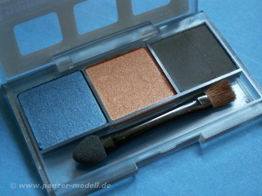Im Vertrieb von Dickie-Tamiya ![]() Es handelt sich hierbei um ein kleines Kästchen, mit klappbarem Deckel, drei Farbtöpfchen und einem "Pinsel" mit einer Schaumstoffseite und einer Pinselseite. Die Farben sind von recht fester Konsistenz und werden nur als Pigmentfilm aufgenommen, was den Auftrag am Fahrzeug leicht dosierbar macht! An sich sieht es nicht anders aus, als ein kleines Schminkkästchen für die Damenwelt - also, bloß nicht verwechseln, sonst schmiert sich die Freundin noch Schlammfarbe ins Gesicht. ;-). Das Set D bietet dem Modellbauer die drei Farben "verbranntes blau", "verbranntes rot" und "Öl". Damit hat man schon ein paar schöne Gestaltungsmöglichkeiten für die Alterung von Fahrzeugen. Allerdings liegt es immer noch am Modellbauer, wie und wo er diese am besten einsetzt - es nützt der beste Effekt nichts, wenn er falsch eingesetzt ist. Die Einsatzmöglichkeiten dieses Sets sind wohl hauptsächlich für die Darstellung von Ölspuren und Flecken. Die beiden verbrannten Farbtöne könnten zur Filterung an heißwerdenden Teilen verwendet werden. Aber mit diesem Set erleichtert Tamiya dem Modellbauer die Möglichkeit des Auftrags von Schmutz und Alterungsspuren erheblich. Und da das ganze für knapp 8 Euro zu haben ist und auch nur wenig Material verbraucht wird, ist dies eine gute und lohnenswerte Anschaffung. Das Set ist bei dem Modellbaufachhändler eures Vertrauens zu bekommen. |