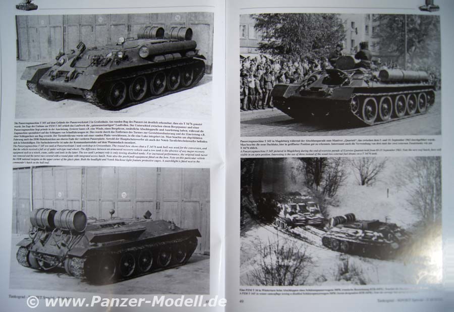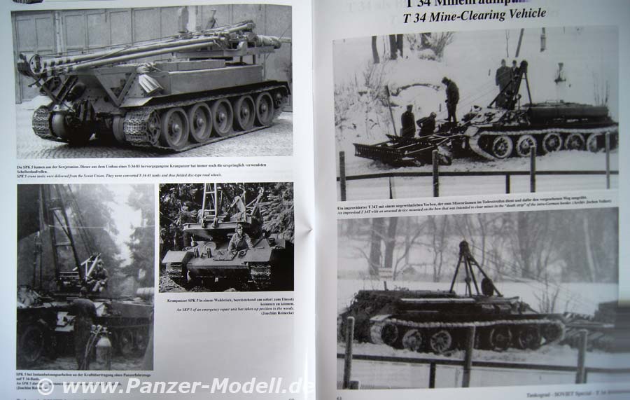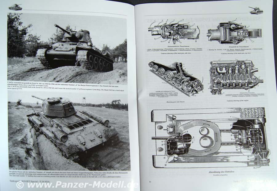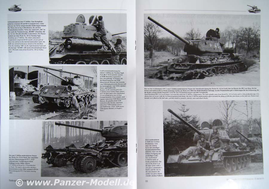 2 Textseiten widmen sich dem T34/85, es folgen 16 Bildseiten. Danach wird die Modernisierung zum 85M auf 6 Seiten in Bild und Schrift behandelt. Dem T34/85 aus polnischer Produktion widmen sich 7 Seiten. 1 Seite befasst sich mit Auslandshilfen. 2 Seiten mit den Vorschriften, 3 Seiten mit Su-85 u 100. Auf den letzten 18 Seiten werden, die Spezialfahrzeuge vorgestellt