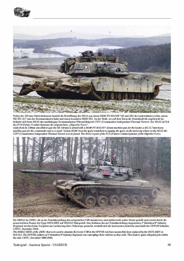 Der seinerzeit noch verwendete MERDC Tarnanstrich wird in verschiedensten Varianten gezeigt. Und obwohl es sehr genaue Vorschriften für die Anbringung dieser Tarnung gab schien dass die US Truppen nicht besonders zu interessieren. Das ist besonders deutlich auf dem Foto des M109 A3 Shop Van zu erkennen. Darüber hinaus ist erstklassiges Bildmaterial, z. B. vom Kampfpanzer M1 Abrams und seinem imaginären Gegner, dem Kampfpanzer M60A3 der OPFOR, vorhanden. Der M60A3 stellte in den „Kampfhandlungen“ den sowjetischen Kampfpanzer T-80 dar.