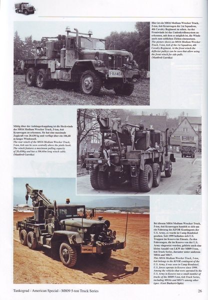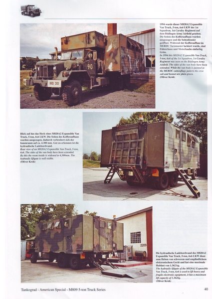 Neben der Verwendung des M809 in der US Army wird auch kurz auf die Verwendung bei den US Marines und der US Navy eingegangen. Interssant ist bis hierher, dass auch einige tolle Photos den M809 (und dessen Varianten) in den verschiedenen Tarnschemen zeigen. Das Spektrum reicht von der MERDC- bis zur aktuellen NATO-Dreifabrtarnung im Rahmen von SFOR Einsätzen.