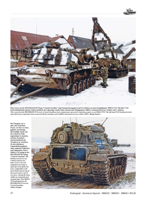 Autor: Carl Schulze 64 Seiten (+4) mit 107 Farb- und 24 Schwarzweißphotos Nachdem in der Reihe American Special bereits unter der Nummer 3021 der M60, M60A1 & M728 betrachtet wurde, kommt hier nun der nächste Teil mit späteren Versionen und dem Brückenleger auf M60 Fahrgestell. Der Textteil über 13 Seiten zu Beginn beschäftigt sich kurz mit Geschichte und Varianten des M60 und geht dann über zur Entwicklung neuer Bewaffnung für Kampfpanzer, insbesondere dem Shillelagh Weapon System, und dem eng damit verbundenen M60A2. Der M60A1 AVLB, seine Technik und die verwendeten Brücken sind Themen weiterer Abschnitte. Nur ganz kurz wird auf den M60A1 MICLIC eingegangen, gefolgt von Informationen zur Verwendung des M60 beim USMC. Der M60A3 als letzte serienmäßige Verbesserung wird behandelt, bevor man mit weiteren Verbesserungen, internationalem Einsatz und der Außerdienststellung zum Schluss des Textteils kommt. Der Bildteil gestaltet sich wie folgt: