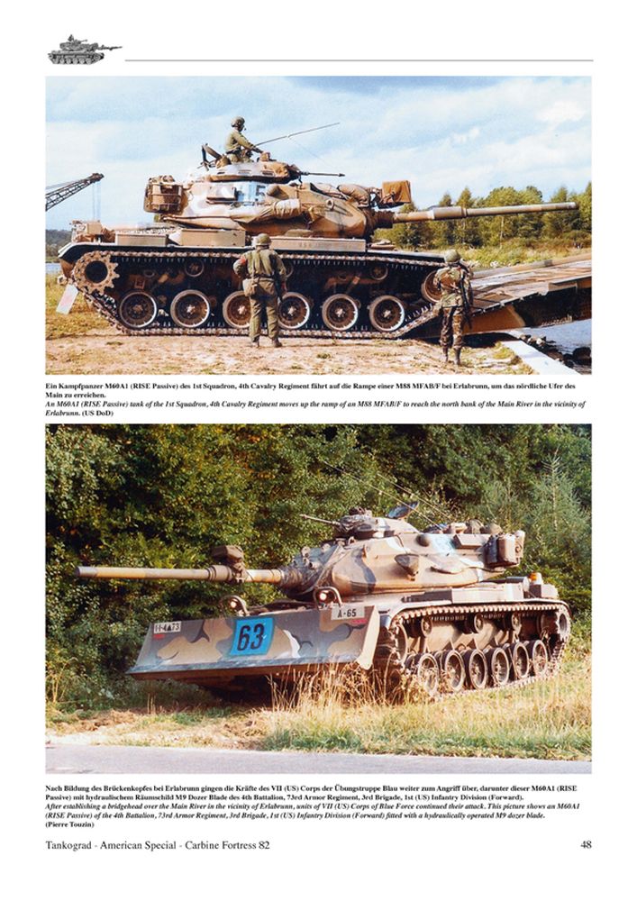 Die Gefechtsübung Carbine Fortress fand im Rahmen der Reforger 82 (Return of Forces to Germany) statt. 550 Hubschrauber, 22.000 Fahrzeuge und 72.500 Soldaten nahmen an der Übung teil. Zu Beginn des 10-seitigen Textteiles erfahren wir etwas über Reforger 82, bevor die Autoren Carbine Fortress näher durchleuchten. Eine große Tabelle gibt einen Überblick über die teilnehmenden Streitkräfte. Der Bildteil folgt dem zeitlichen Ablauf und gliedert sich in folgende Abschnitte: - Aufmarsch der Übungstruppen vom 8. Bis 12. September 1982 - 13. Bis 15. September 1982: Angriffsoperationen der Übungstruppe Orange über die fiktive Landesgrenze unter Einsatz einer Kriegsbrücke bei Wertheim-Faulbach - Airborne Assault der 3rd Golden Brigade, 82nd Airborne Division am 13. September 1982 Luftlandezone Golf und Kilo bei Gelchsheim/Riedenheim und bei Oberscheckenbach - 16. 17. September 1982: Gegenangriff der Übungstruppe Blau - 20. Bis 23. September 1982 Offensive er Übungstruppe Blau aus Richtung Armorbach, östlich Würzburg und Luftlandeoperationen nach der neuen US Army Doktrin Airland Battle 2000 - Wispering Death Zwischen den Bildern finden sich Kartenausschnitte und graphische Darstellung von Gliederungen von Einheiten wie z.B. einer M60 Kompanie oder eines Engineer Bataillons. Die Fotos dieser Großübung zeigen uns eine Unzahl an Fahrzeugtypen und Uniformzusammenstellungen, fast ausschließlich, der US Streitkräfte. Grad die Farbfotos liefern so manch herrliches Bild zu dem damals üblichen MERDC-Anstrich. Man bekommt einen Überblick, welches Fahrzeuge zusammen unterwegs waren. Hier und da entdeckt man Besonderheiten wie einen M901 mit nach oben verschraubten Kettenschürzen, so dass die Kette freiliegt, einen M113 mit Räumschild oder mit einem doppelbereiften M105 Anhänger, einen M577 mit einer extrem scharfkantigen (Zitat „kunstvollen“) MERDC Tarnung, Gerät auf Luftlandepaletten, Gama Goats und M88 MFABs als Kriegsbrücke. Ein weiterer interessanter Einblick, mit welchem Aufwand und wie damals in der Öffentlichkeit geübt wurde. Der Preis beträgt unverändert seit Jahren EUR 14,95 (zzgl. Versandkosten) direkt ab Verlag.
