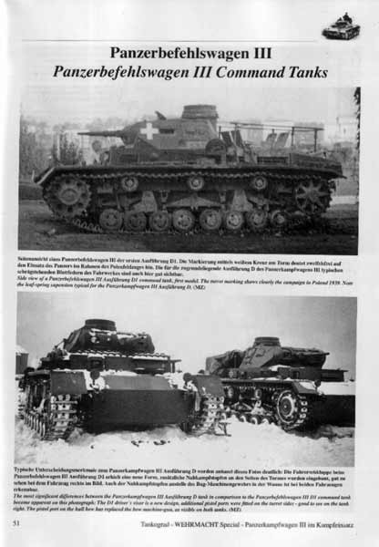 Ein kurzer einleitender Text zu dem Fahrzeug eröffnet jeweils das Heft. Hierbei wird erfreulicherweise die Fahrzeughistorie nur sehr sehr kurz angerissen, da der Fokus des Hefts ganz klar auf den Einsatzfotos liegt. Eine Auflistung aller gebauten Ausführungen mit den jeweiligen Stückzahlen runden den Textteil ab. Der größte Teil der 64 Seiten widmet sich den Einsatzbildern der Fahrzeuge, die wie keine anderen für die Blitzkriege der Wehrmacht stehen. Besonders lobenswert ist die Bildauswahl, wie von Tankgrad gewohnt, handelt es sich nicht um eine stumpfe Aneinanderreihung hinlänglich bekannter Bilder, sondern hier werden ausnahmslos bisher unveröffentlichte Bilder in einwandfreier Qualität geboten. Kurze textliche Beschreibungen der einzelnen Bilder ergänzen diese. Bemerkenswert, dass der Verlag sich im Vorwort für die Bildqualität entschuldigt. Meiner Meinung nach völlig unnötig, denn unscharfe Bilder auf denen entfernt ein Panzer auszumachen ist, sucht man hier vergeblich und die Qualität ist angesichts des Alters und des benutzen Filmmaterials Spitzenklasse. Gezeigt werden Aufnahmen aller Baulose der Panzer, wobei der Fokus erfreulicherweise eher auf den eher selten zu sehenden frühen Ausführungen liegt. Herausheben möchte ich hier die Bilder der Ausführungen A bis D des PzKpfw III.