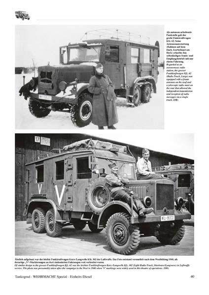 Natürlich werden alle Bauformen und Varianten eingehend beschrieben, sowie der Einsatz an der Front aufgezeigt. Ebenfalls werden die technischen Daten tabellarisch aufgezeigt und auch für die 3 Hauptvarianten Pritsche, Messstelle und Kastenwagen aufgesplittet.