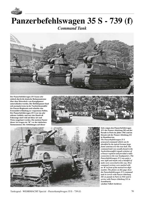 Die restlichen knapp 60 Seiten des Hefts beschäftigen sich ausschließlich mit der Übernahme und Einsatz dieses Panzertyps in die Wehrmacht als Panzerkampfwagen 35S - 739(f).