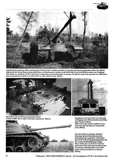 Dann folgen 7 Seiten Text wo angefangen mit der Beschaffung des M48 für die Bundeswehr über die Versionen A1, A2, A2 C, A2 C G, A2 G A2 und deren detailierte Beschreibung bis hin zur Ausmusterung und Verbleib berichtet wird. Der Informationsgehalt hierbei ist sehr hoch und berichtet von den Änderungen die die einzelnen Versionen aufwiesen und die für die Bundeswehr spezifisch waren.